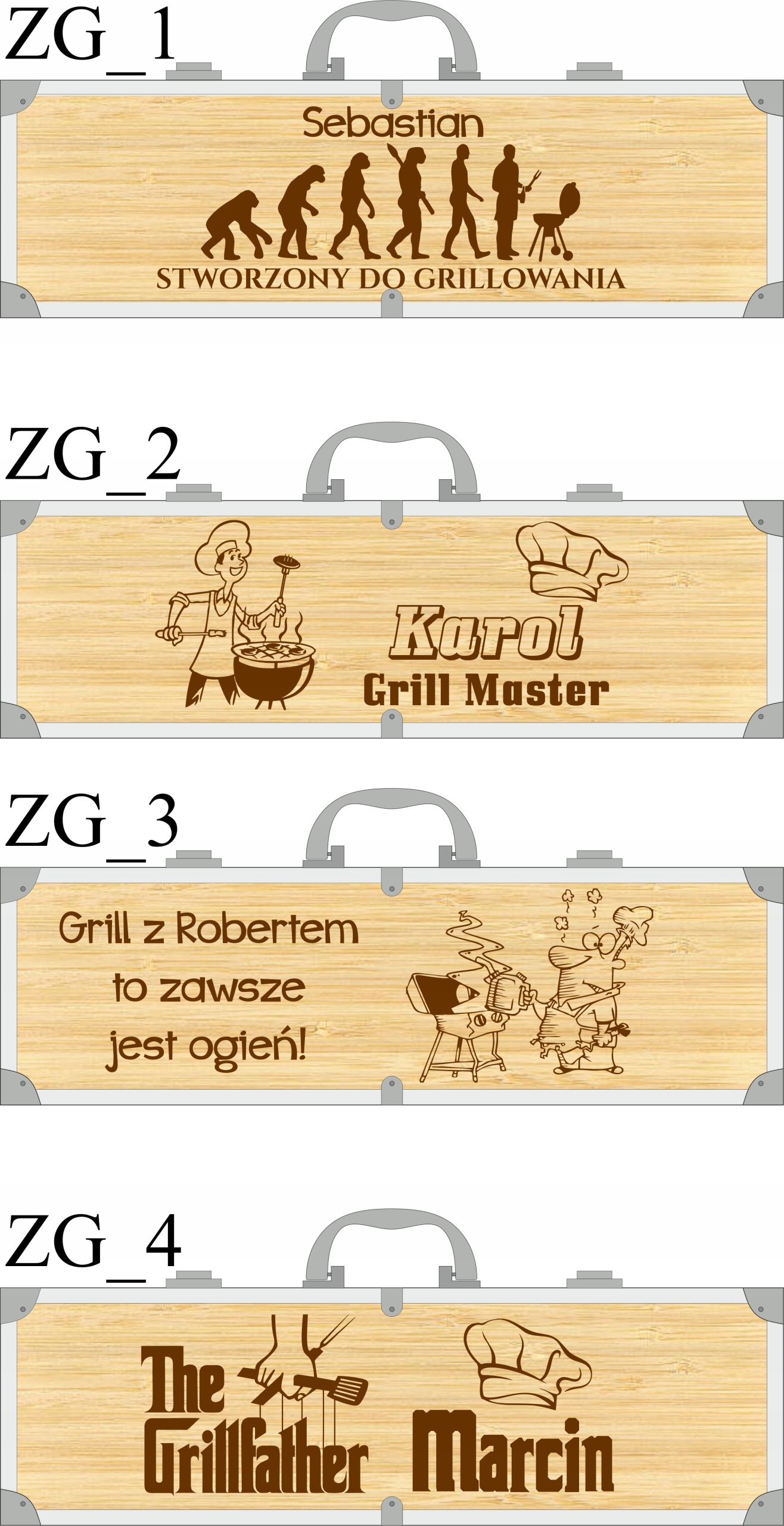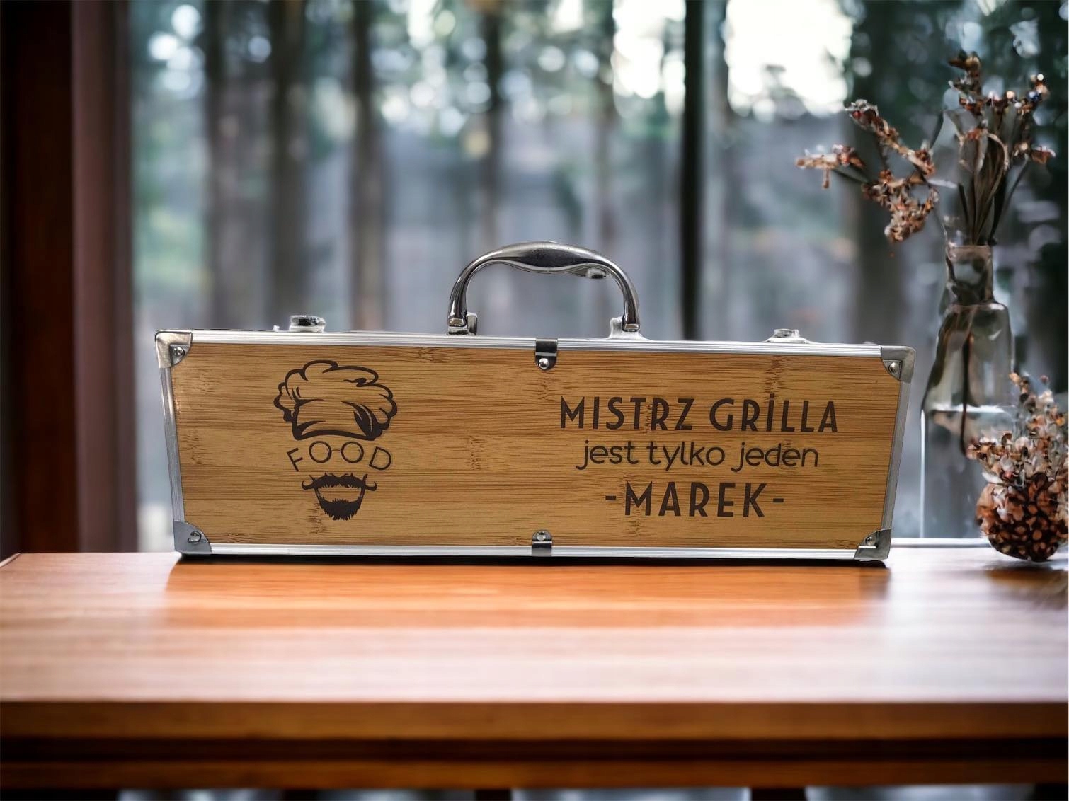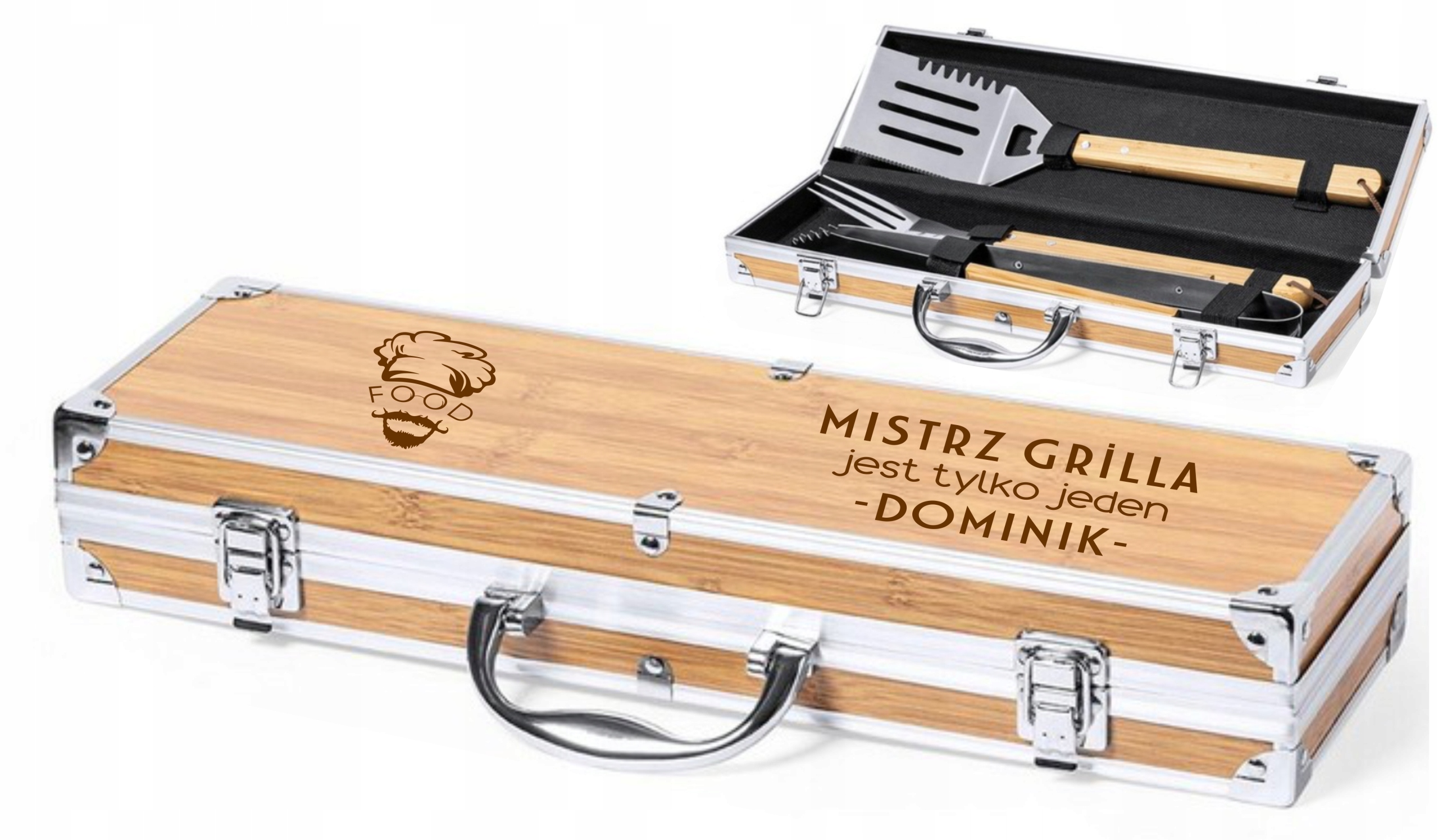 Przedmiotem sprzedaży jest personalizowany zestaw do grilla w bambusowej skrzynce!