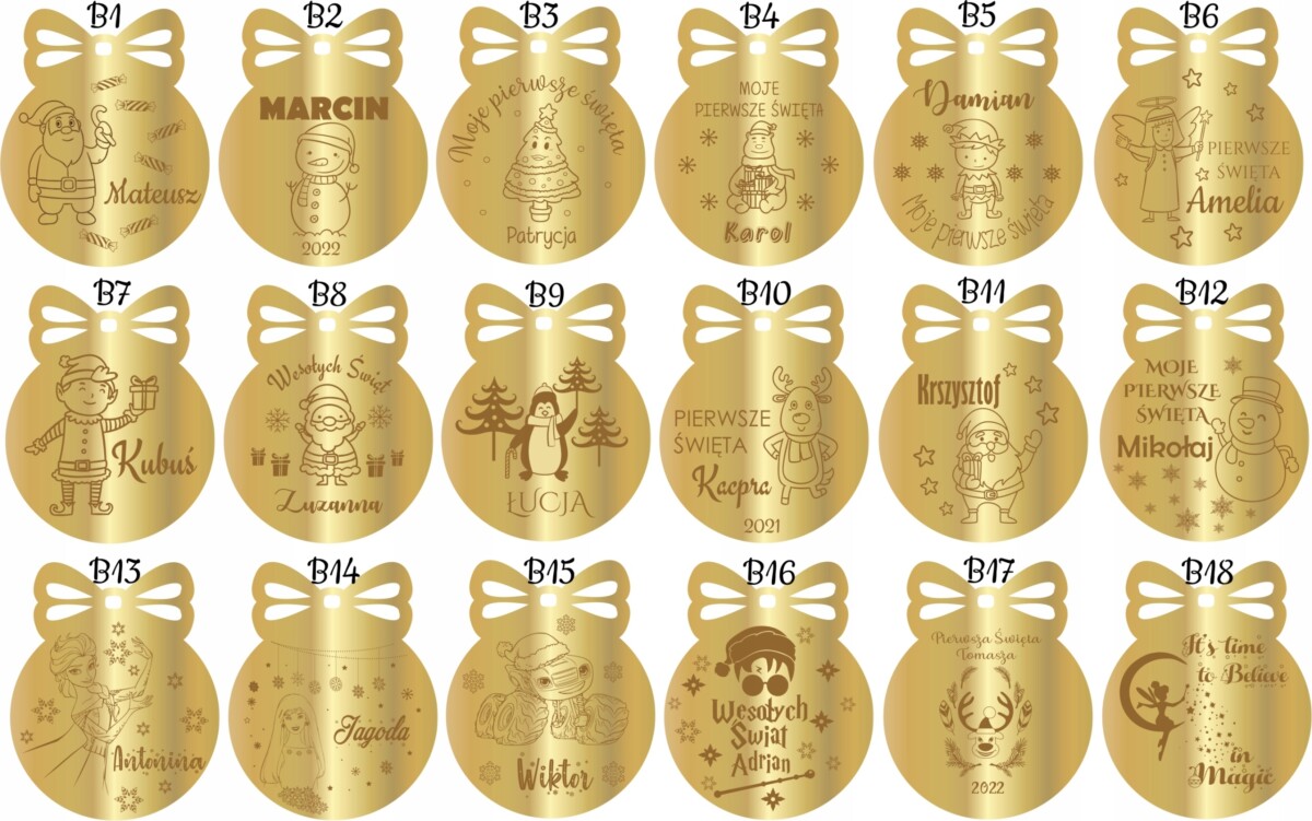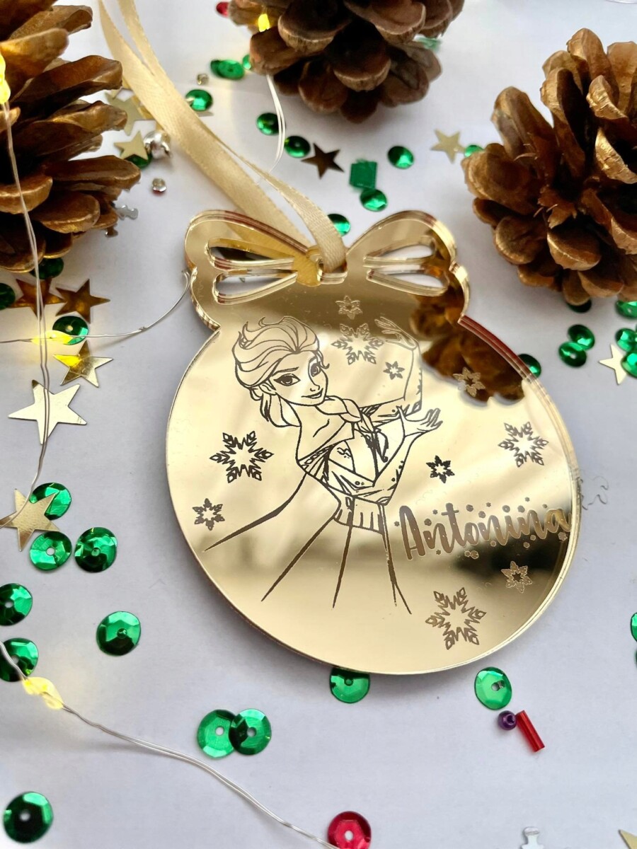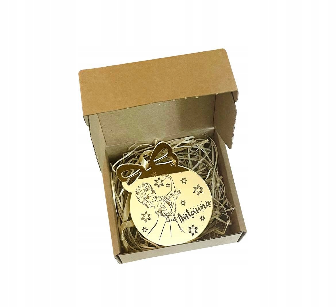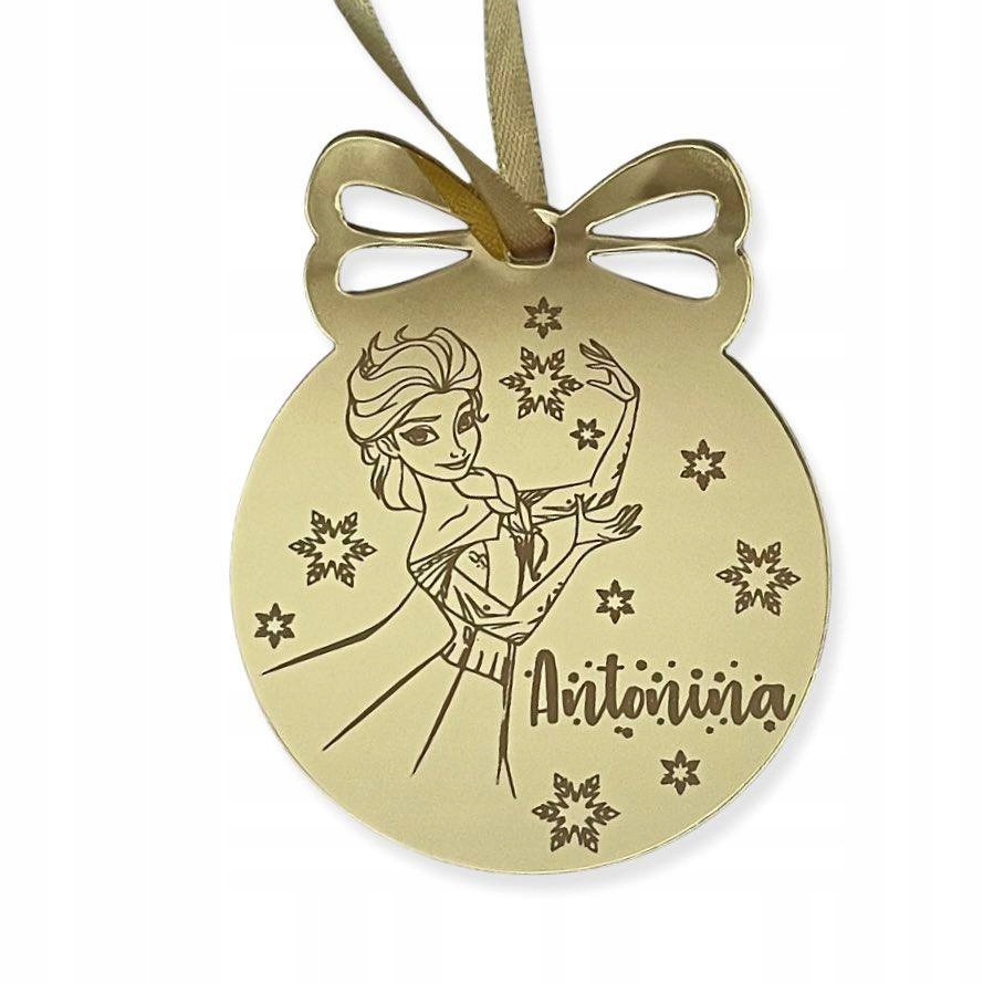 Personalizowana bombka w kolorze złote lustro świetnie sprawdzi się jako wyjątkowa dekoracja na choinkę lub prezent dla najmłodszych.