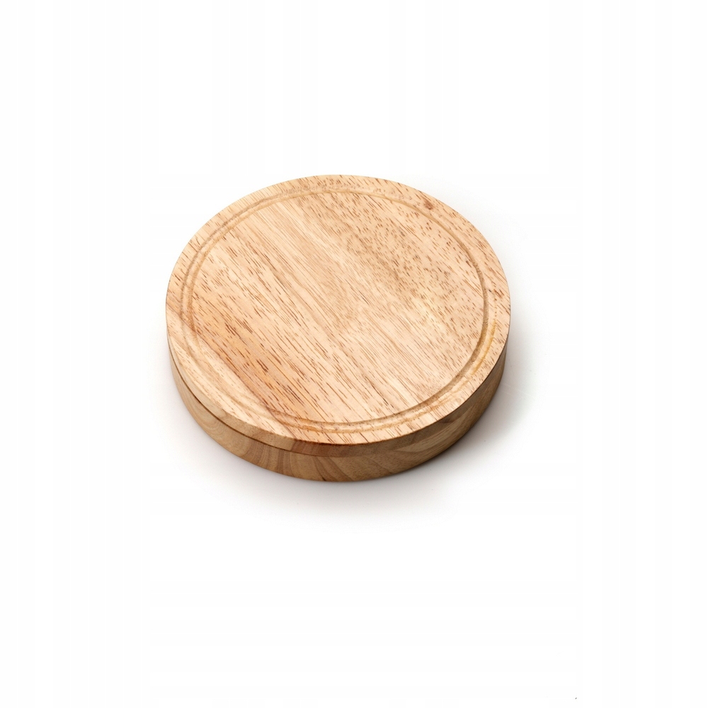 • Okrągła, dwupoziomowa deska na przekąski i sery, idealna na posiedzenia z lampką wina i w towarzystwie przyjaciół. Deska ma naturalny drewniany kolor i jest wyposażona w specjalne sztućce do serów.
