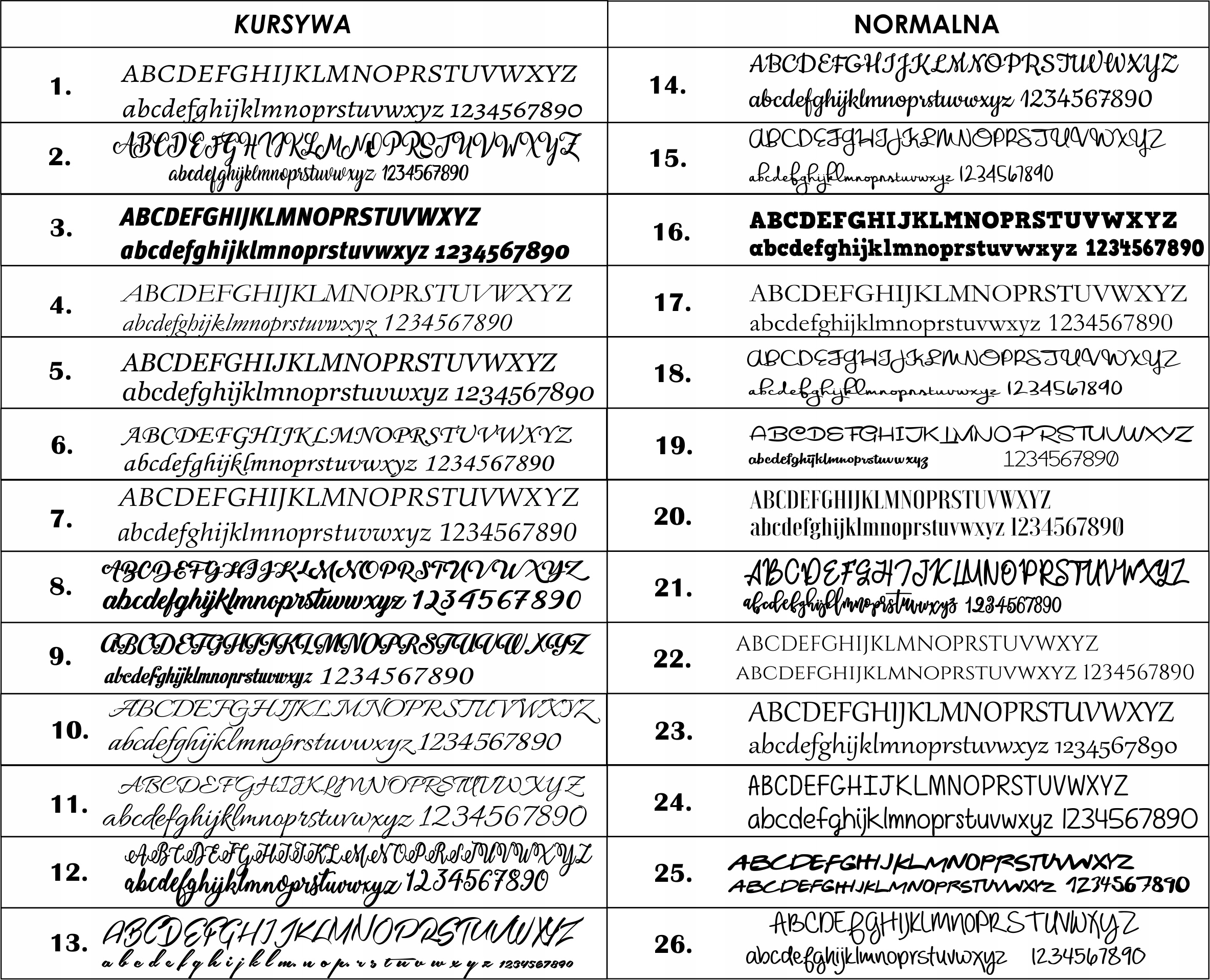 • Podać numer czcionki, 26 różnych do wyboru