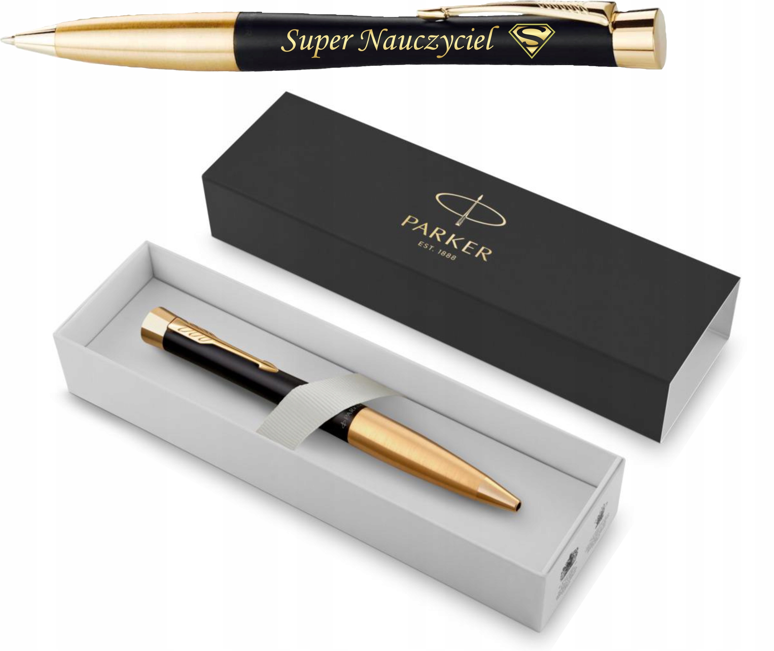 Przedmiotem aukcji jest prześliczny i wyjątkowy oryginalny Długopis Parker URBAN muted black GT czarny platerowany 24-karatowym złotem z grawerem w pudełeczku