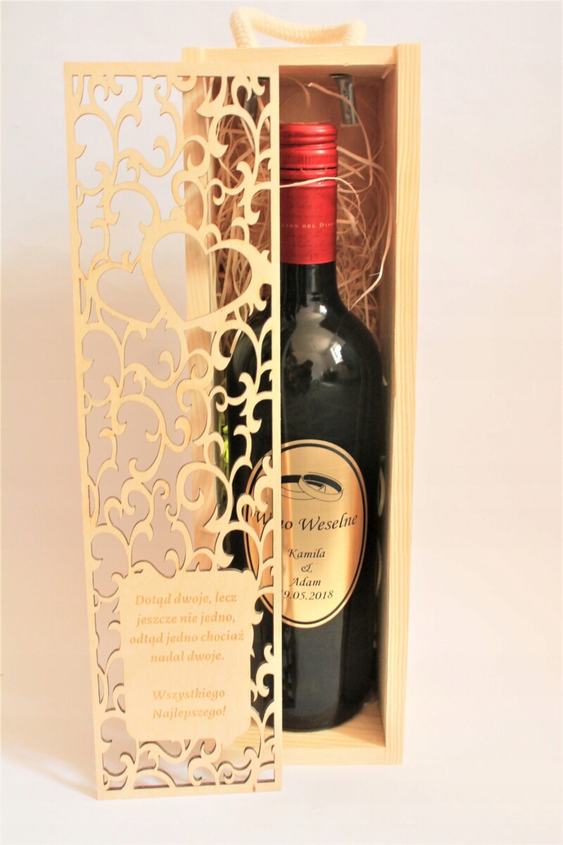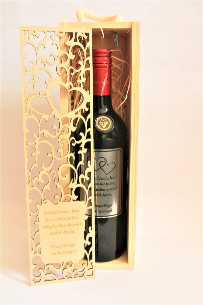 Etykieta/naklejka jest samoprzylepna i wykonana metodą grawerowania laserowego, odporna na ścierania i zalania. Świetnie się sprawdzi jako dodatek na butelkę wraz ze skrzynką na wino!