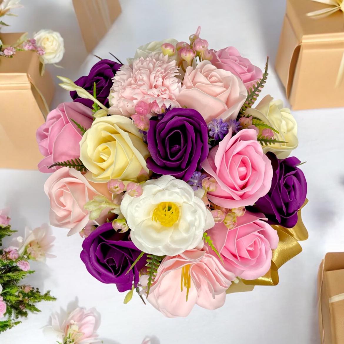 Chcemy wam przystawić doskonałą alternatywą dla tradycyjnych kwiatów żywych, coraz bardziej popularnych kwiatów mydlanych. Idealna kompozycja kwiatów do domu, recepcji, restauracji, salonu piękności.
