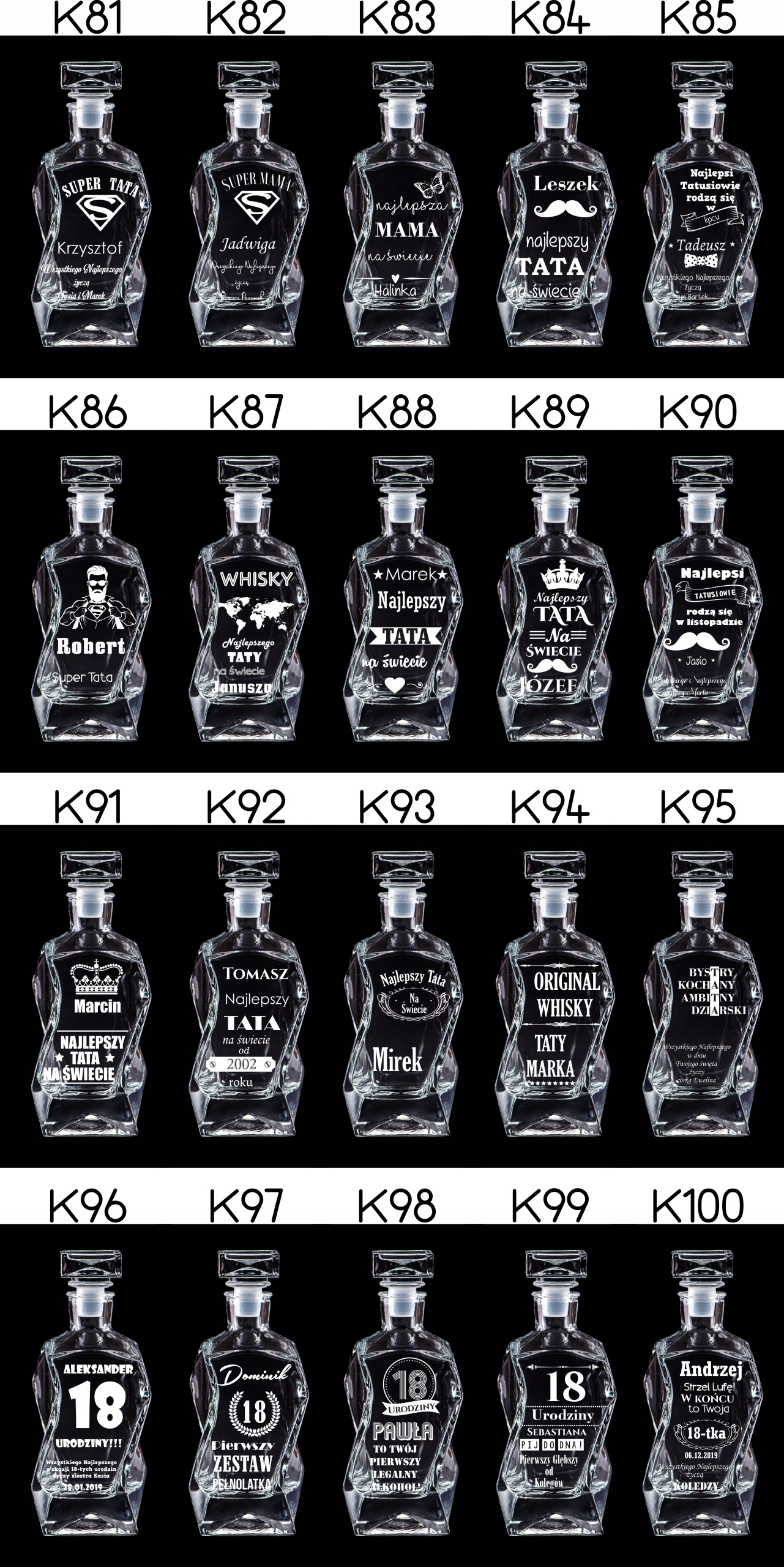 Wszystkie podane przykłady można edytować lub mieszać na własny dowolny sposób np. zamiast najlepszy tata wykonać najlepszy dziadek brat etc. Wystarczy przy zamówieniu wysłać nam wytyczne a my wykonamy zamówienie według podanych wytycznych!Opis Produktu do whisky
