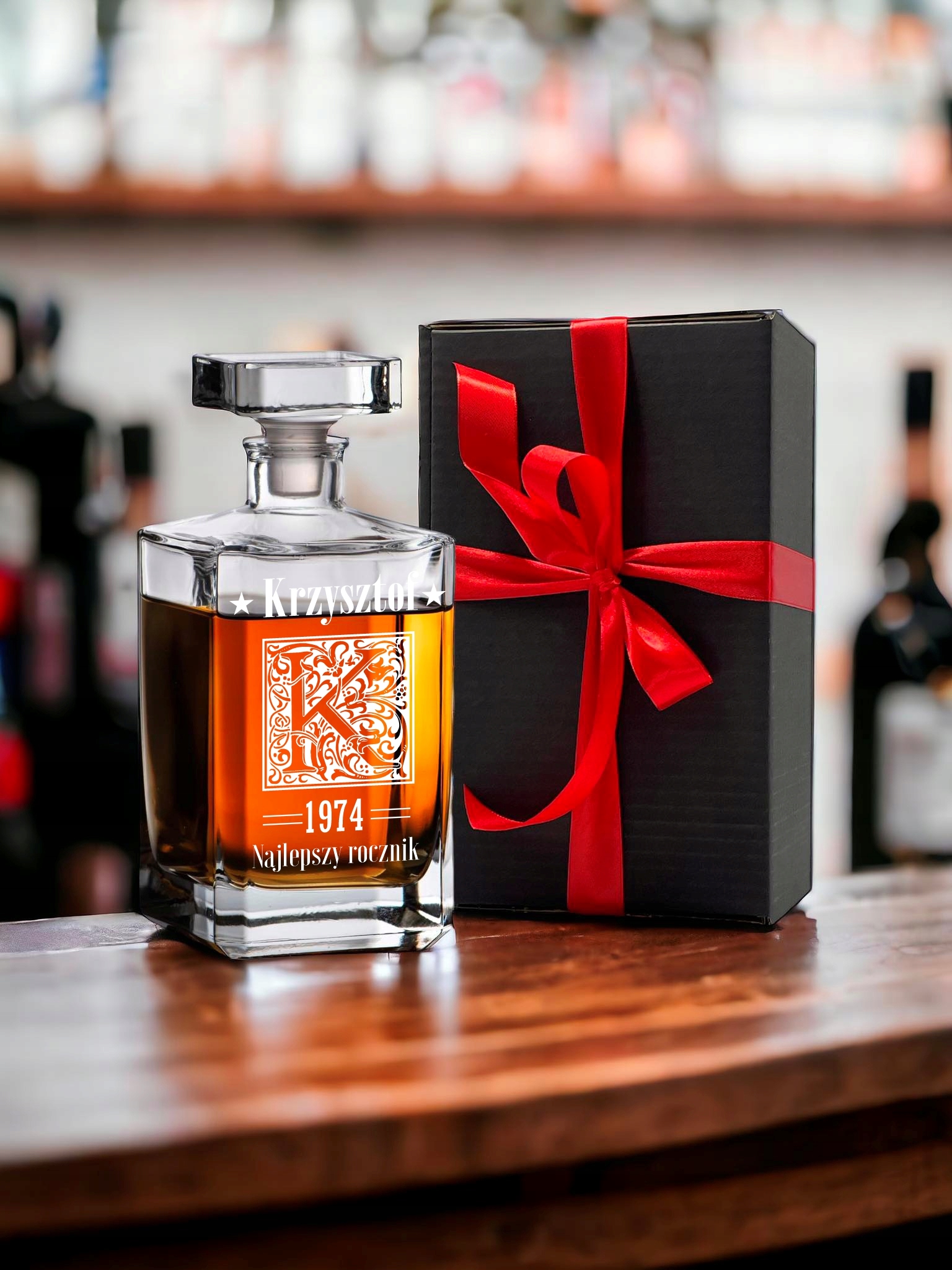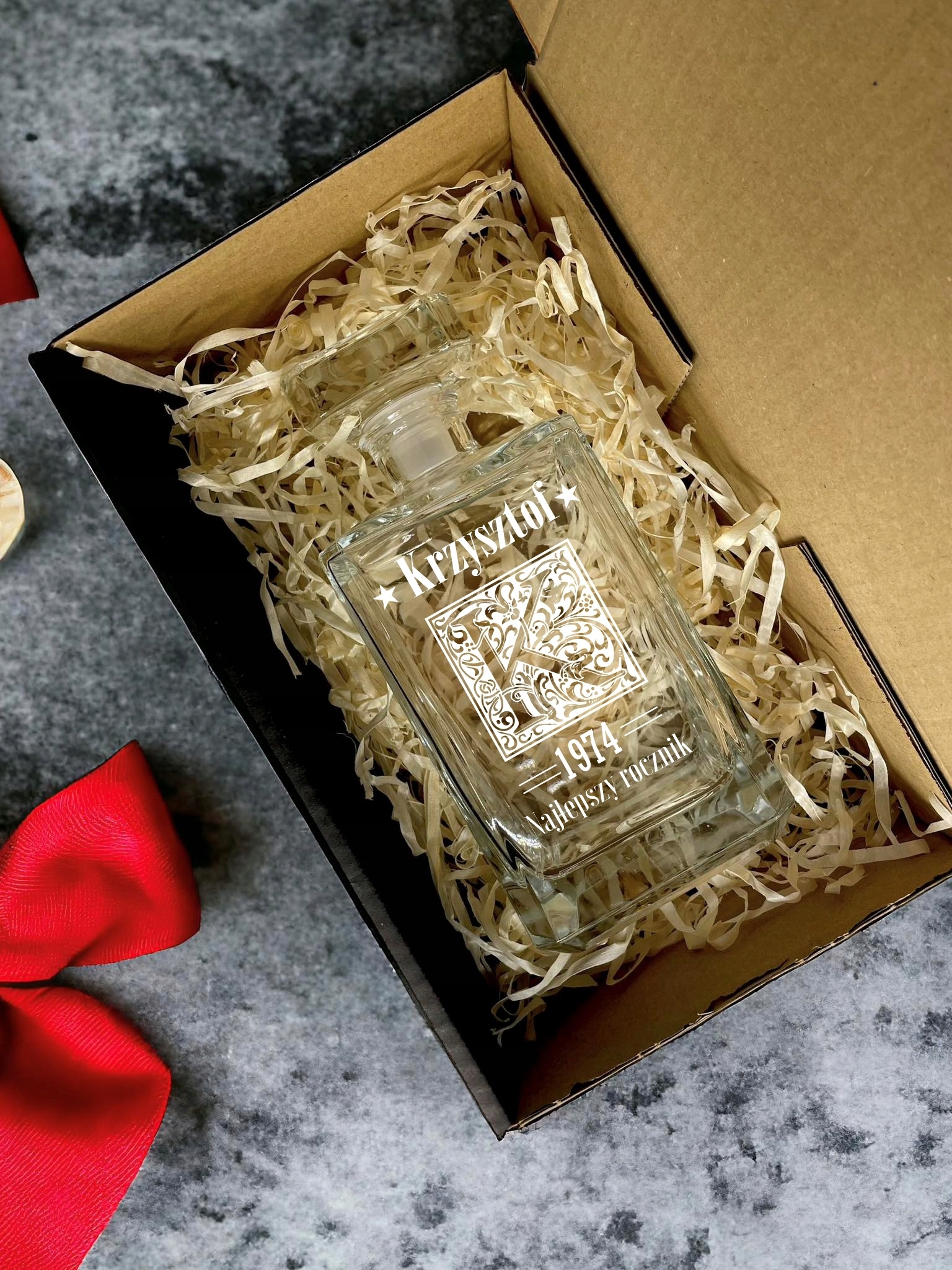 Karafka whisky z personalizowanym grawerem wykonana z grubego szkła!
