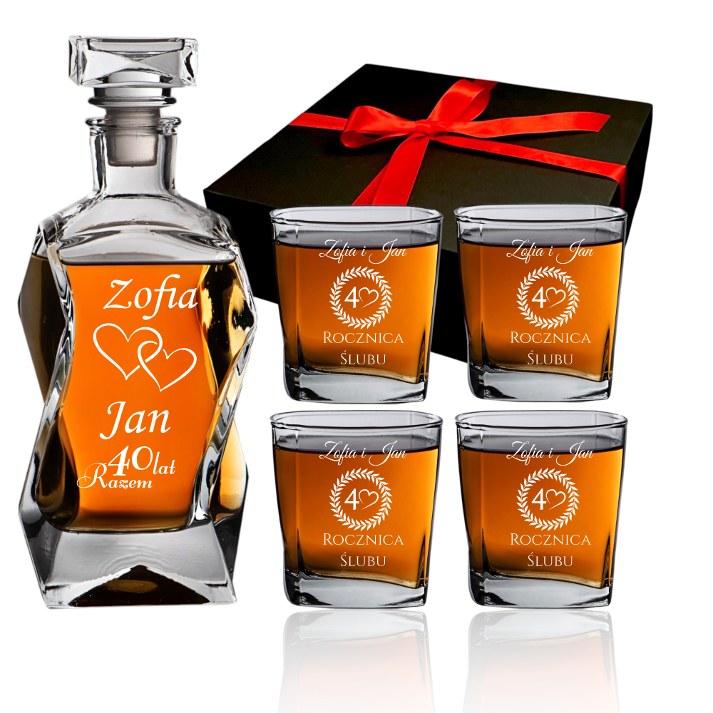 Karafka i 4 szklanki do whisky z grawerem w pudełku prezentowym Rocznica Ślubu