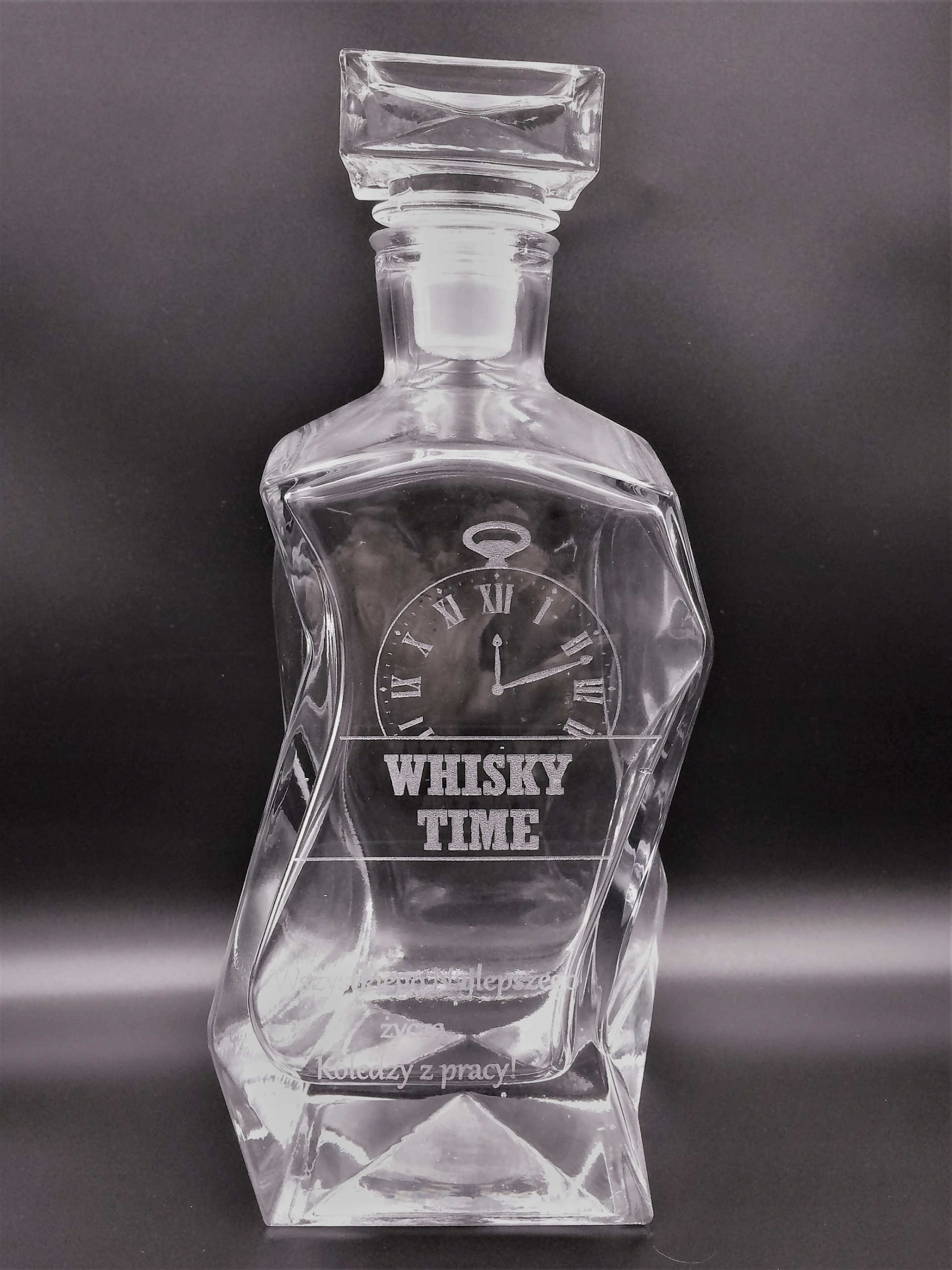 Przedmiotem aukcji jest Karafka do whisky o pojemności 750 ml z personalizowanym grawerem wykonana z grubego szkła!