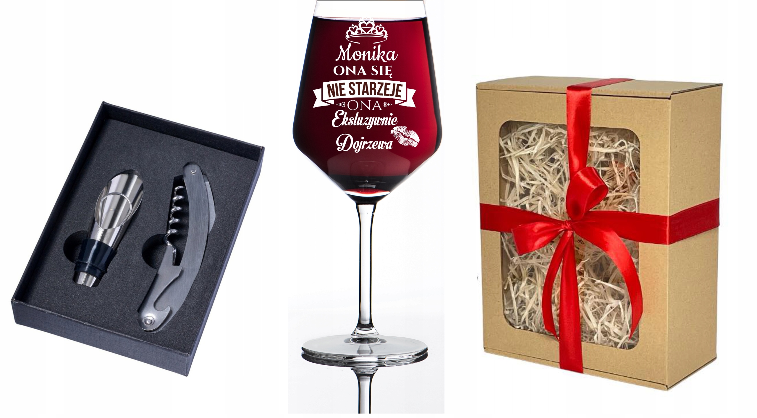 Przedmiotem aukcji jest kieliszek XL  (1 sztuka) z grawerem o pojemności 530 ml w pudełku prezentowym z akcesoriami do wina