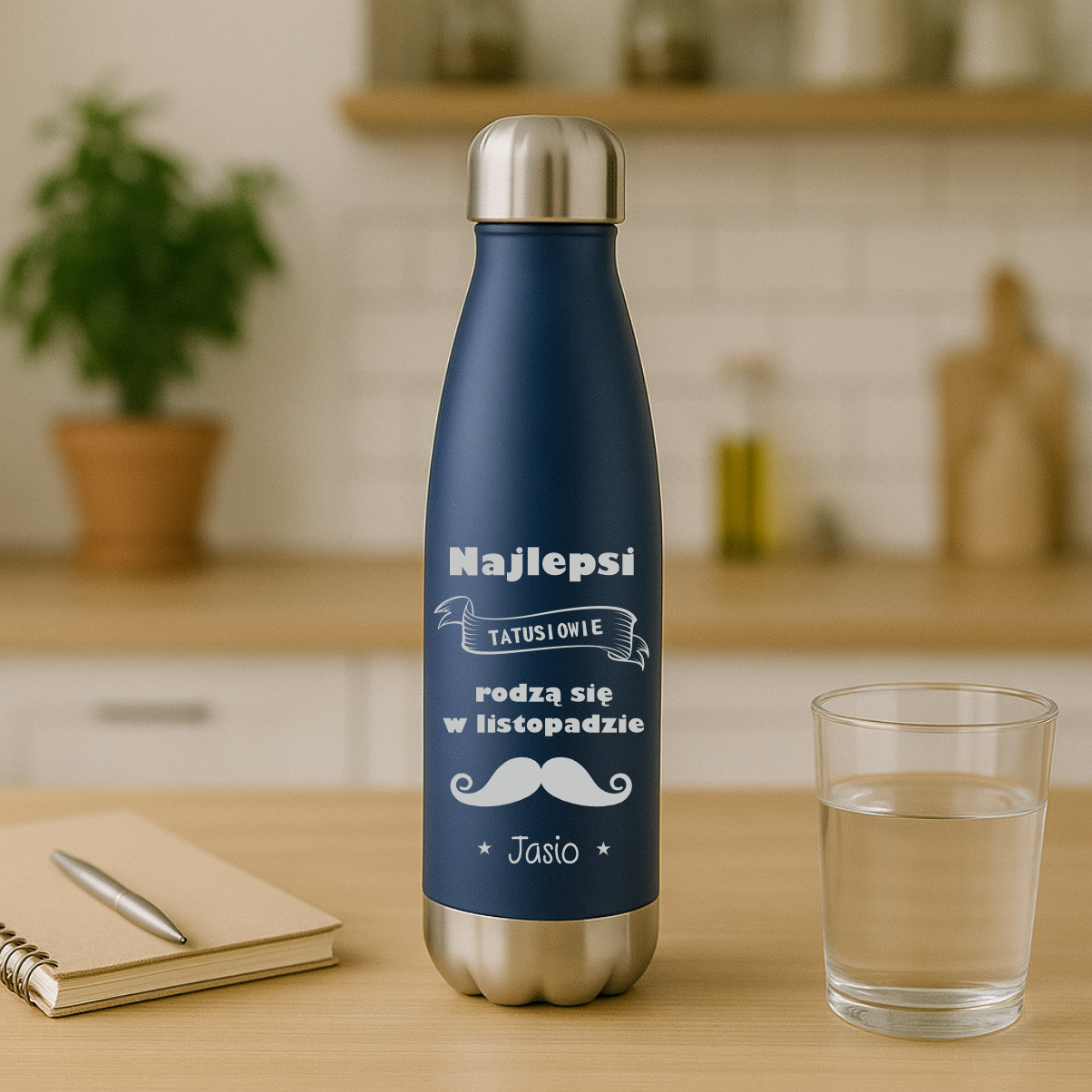KUBEK BUTELKA TERMICZNY Z GRAWEREM PERSONALIZOWANY NIEBIESKA na Dzień Ojca