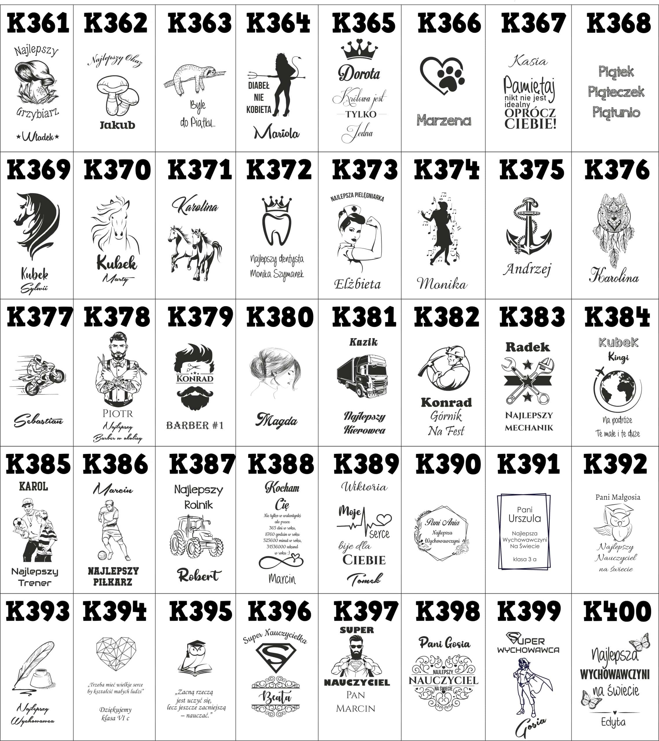 W naszej ofercie jest prawie 400 wzorów do wyboru dla każdego i na wiele okazji między innym