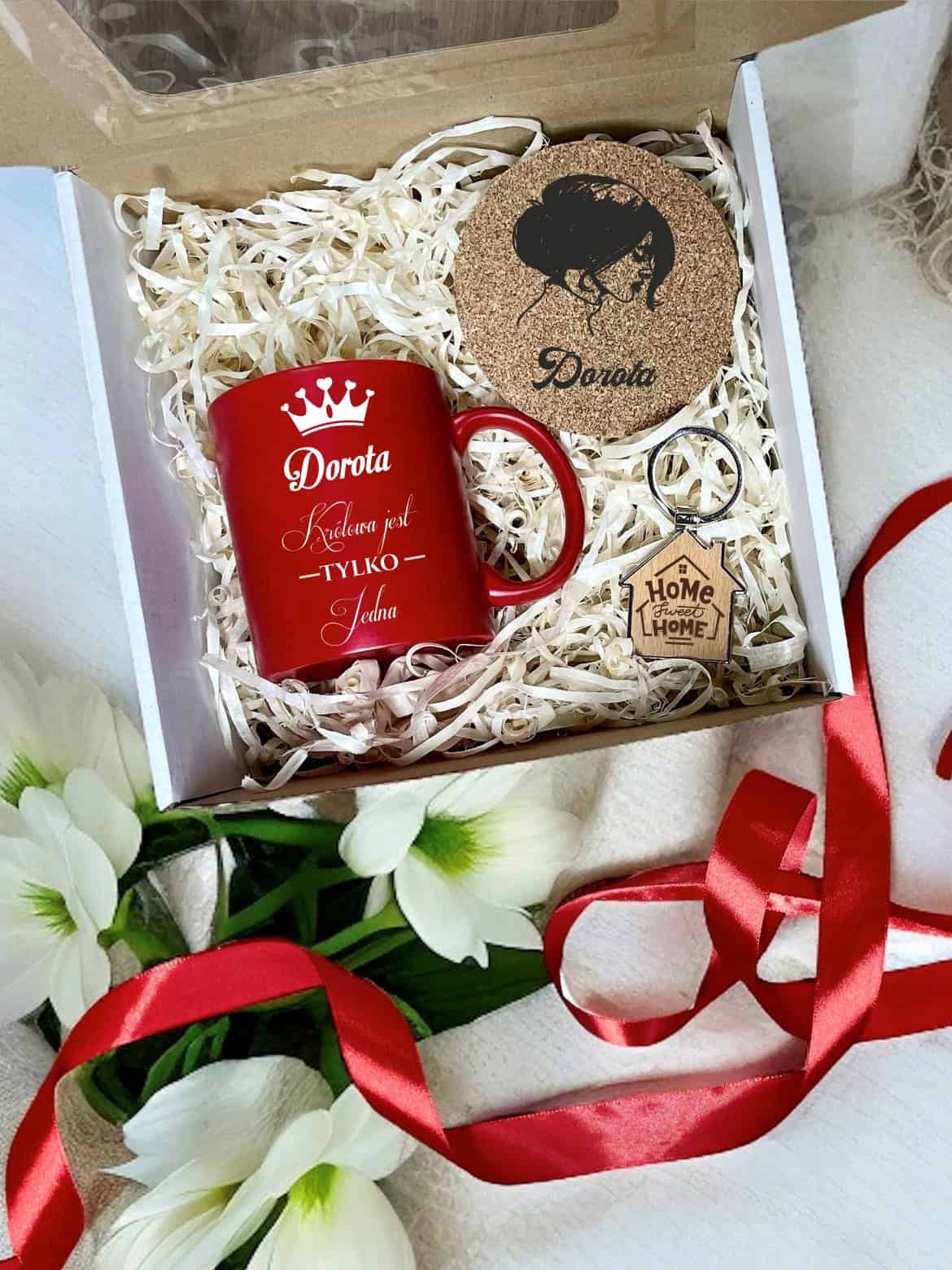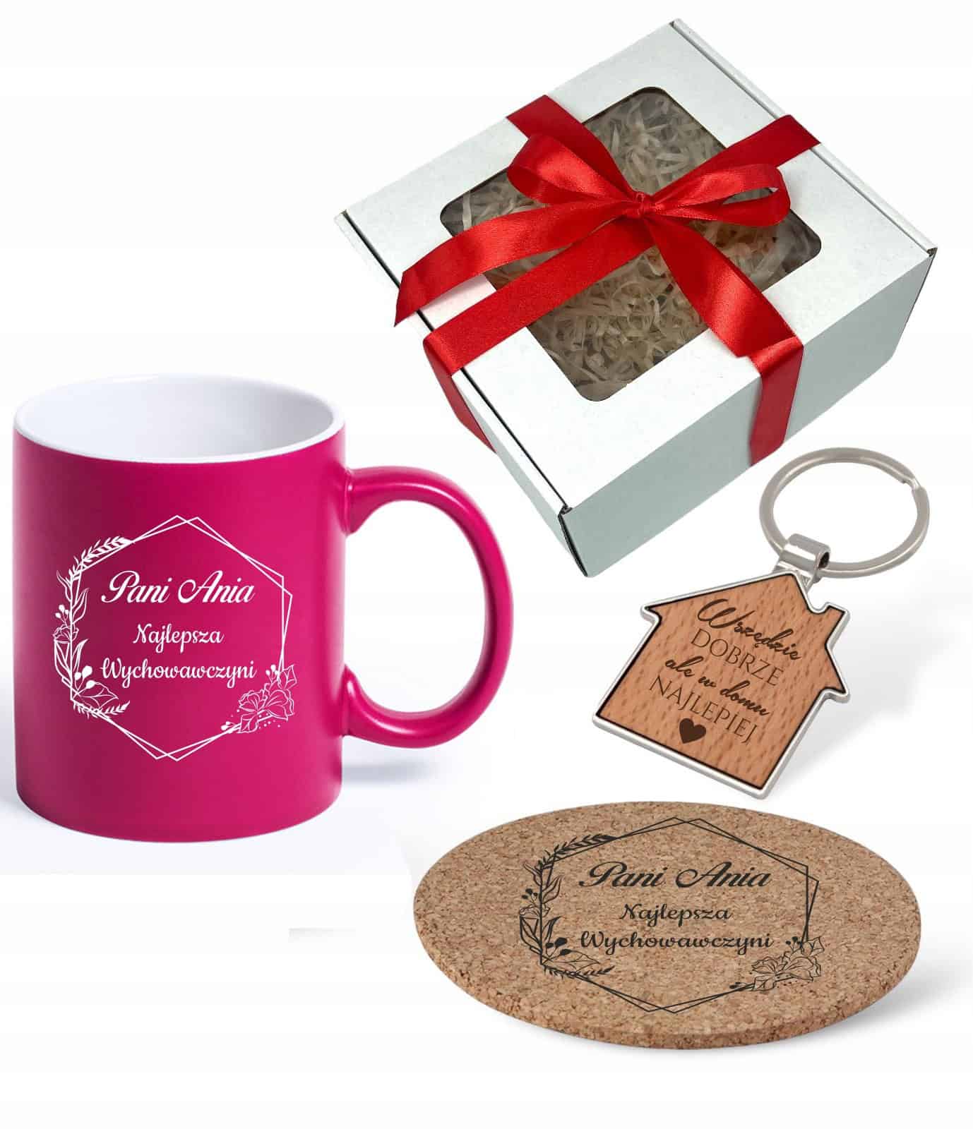 Zestaw Elegancji: Kubek, Podkładka i Brelok z Grawerem w pudełku prezentowym.