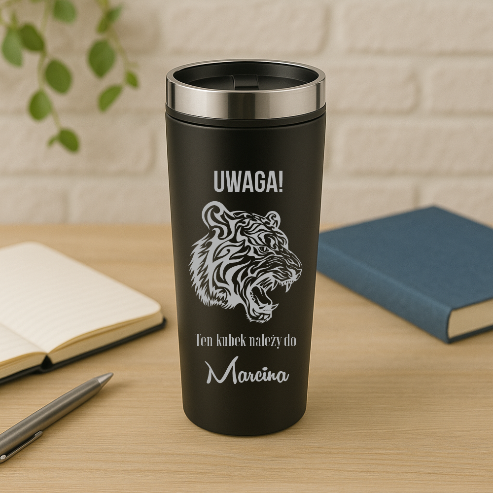 Kubek termiczny w kolorze CZARNYM o pojemności 350 ml z grawerem.