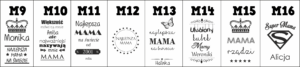 • w wiadomości do sprzedającego napisz numer wzoru np K3 imię Paulina lub data czy własny tekst w zależności od wybranego wzoru