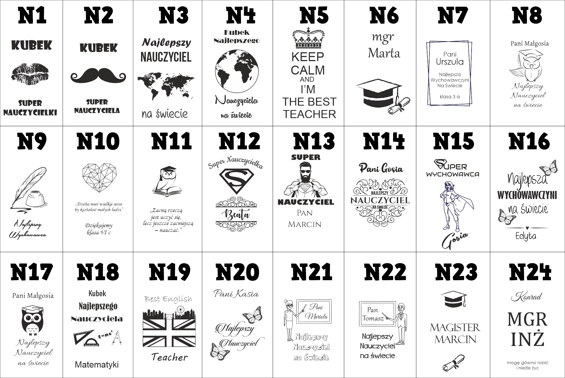 W naszej ofercie jest ponad 350 wzorów do wyboru dla każdego i na wiele okazji! Każdy wzór można edytować lub zmieniać na własny upodobany sposób lub wybrać już gotowy wzór i personalizować go imieniem, datą lub tekstem na własny sposób.