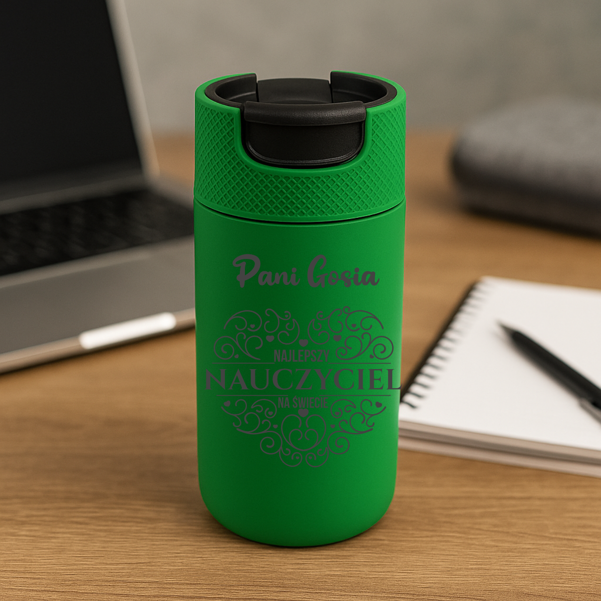 KUBEK TERMICZNY TERMOS GRAWER Z GRAWEREM ZIELONY Dla Nauczyciela