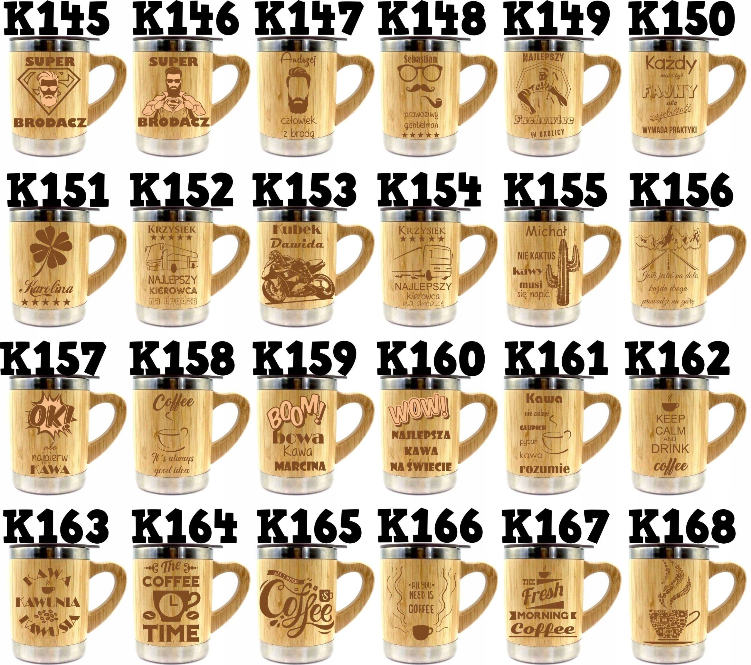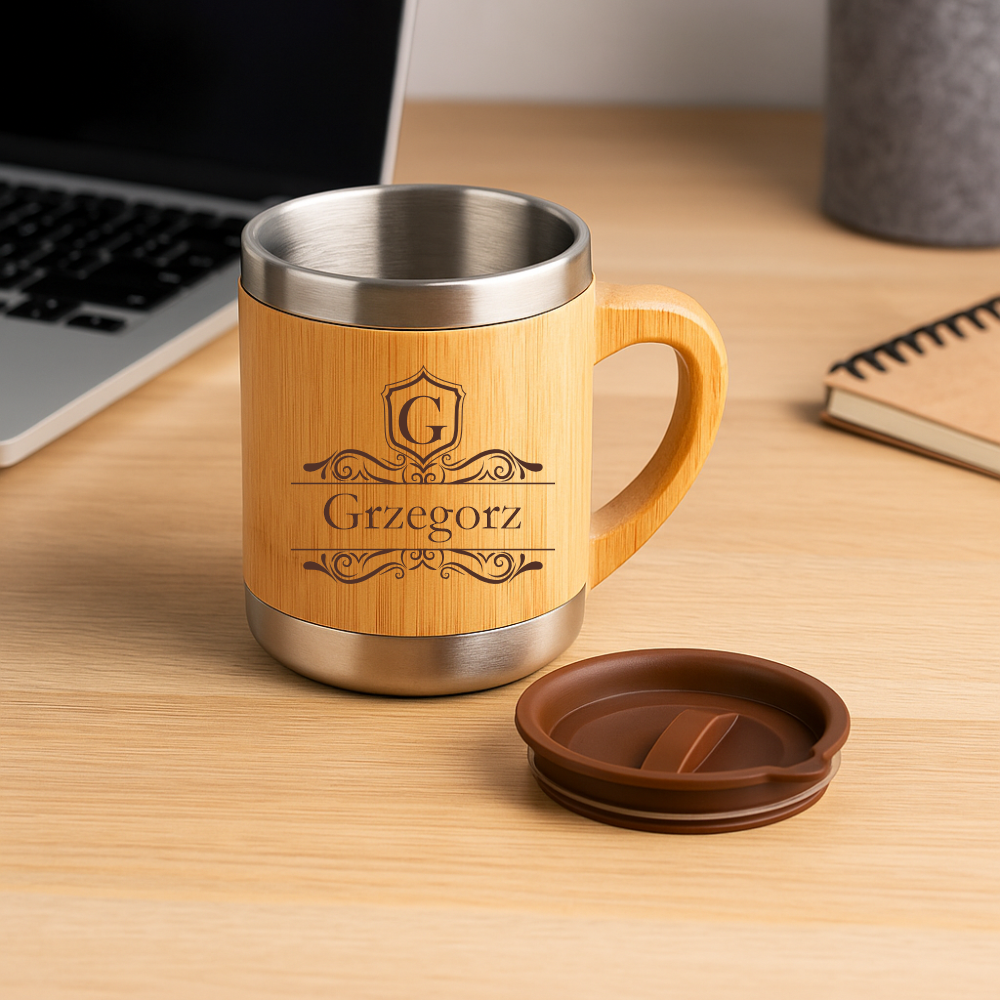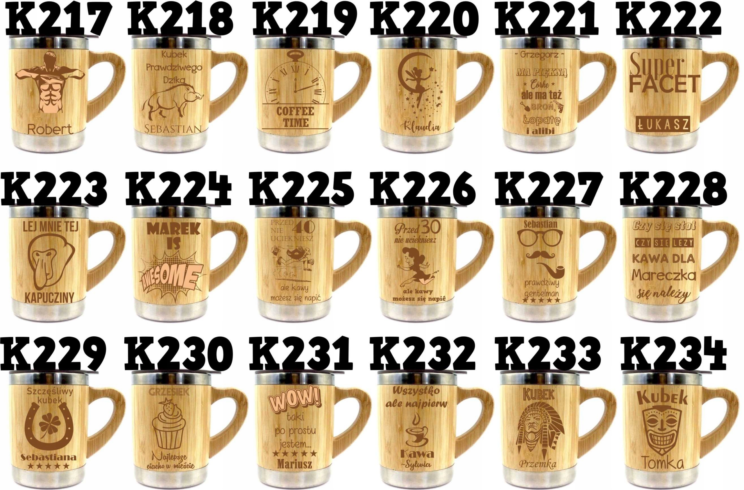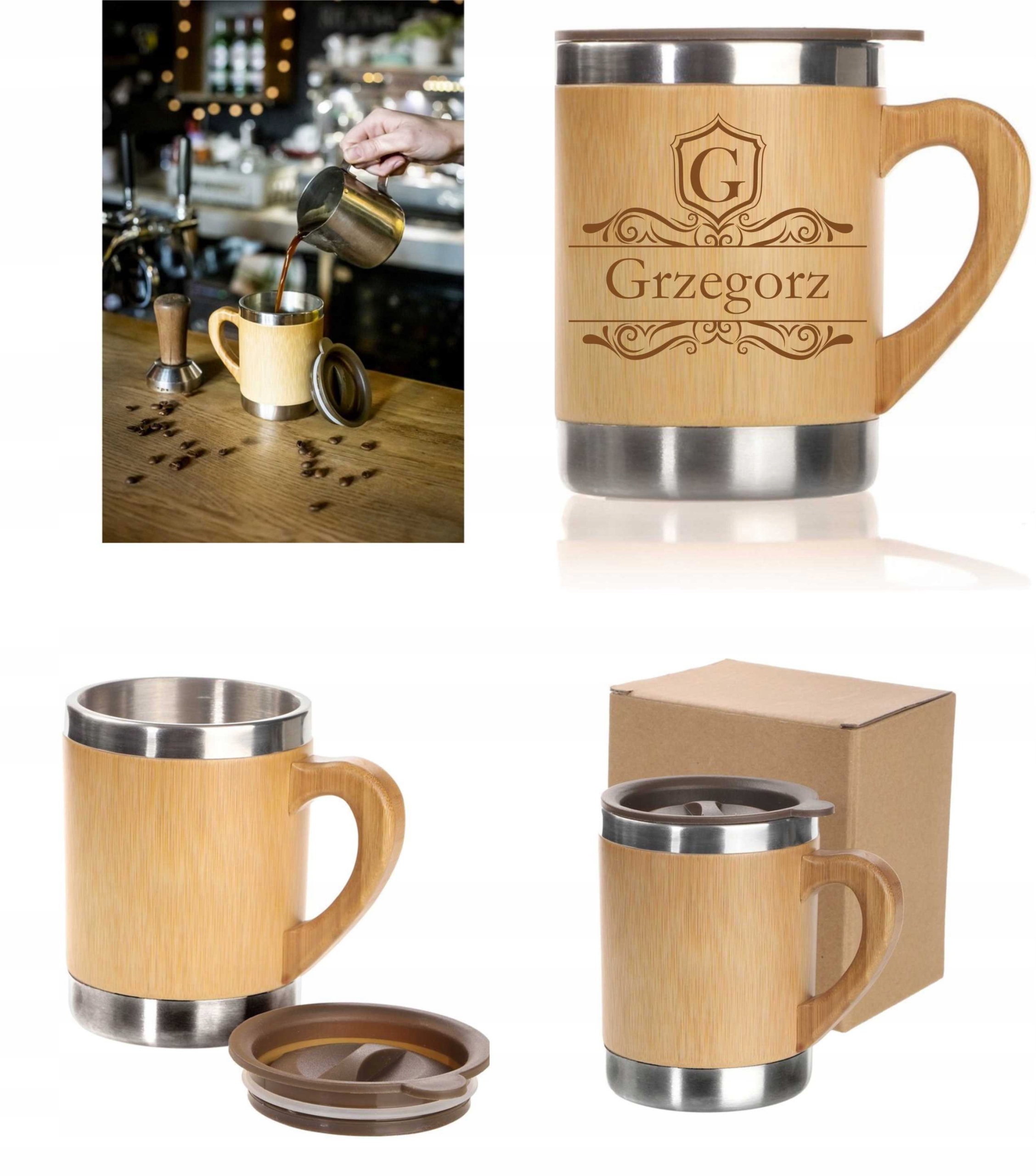 KUBEK TERMICZNY TERMOS Z GRAWEREM BAMBUSOWY!