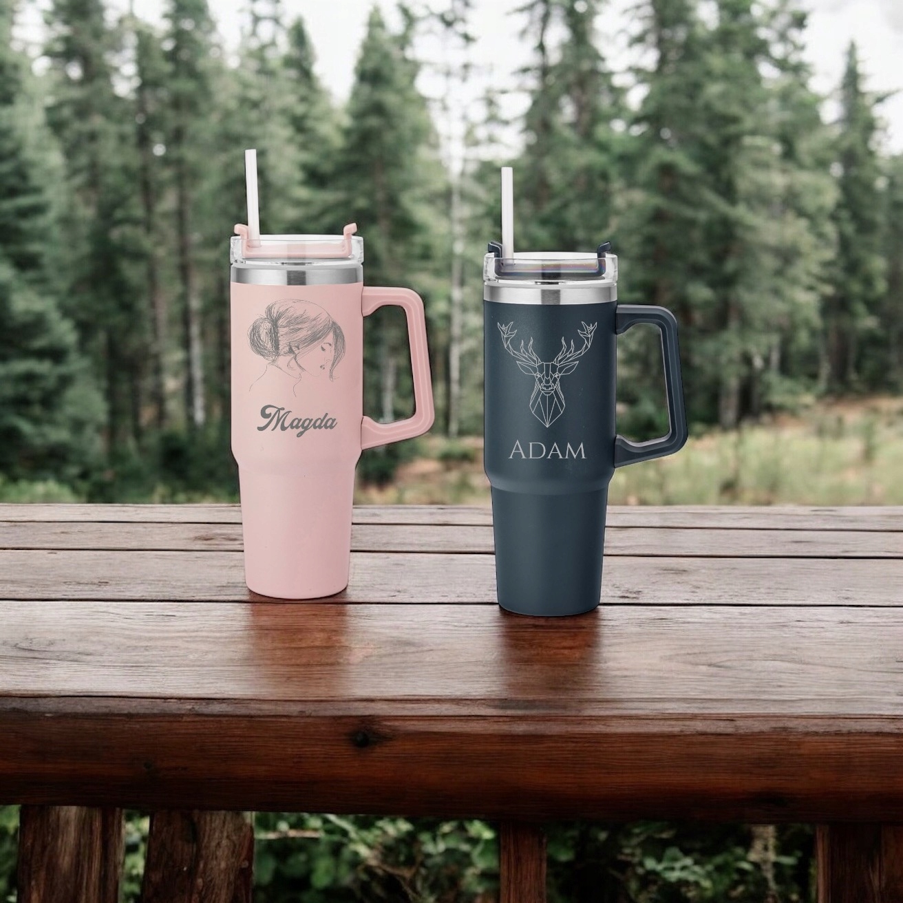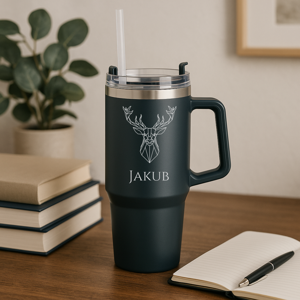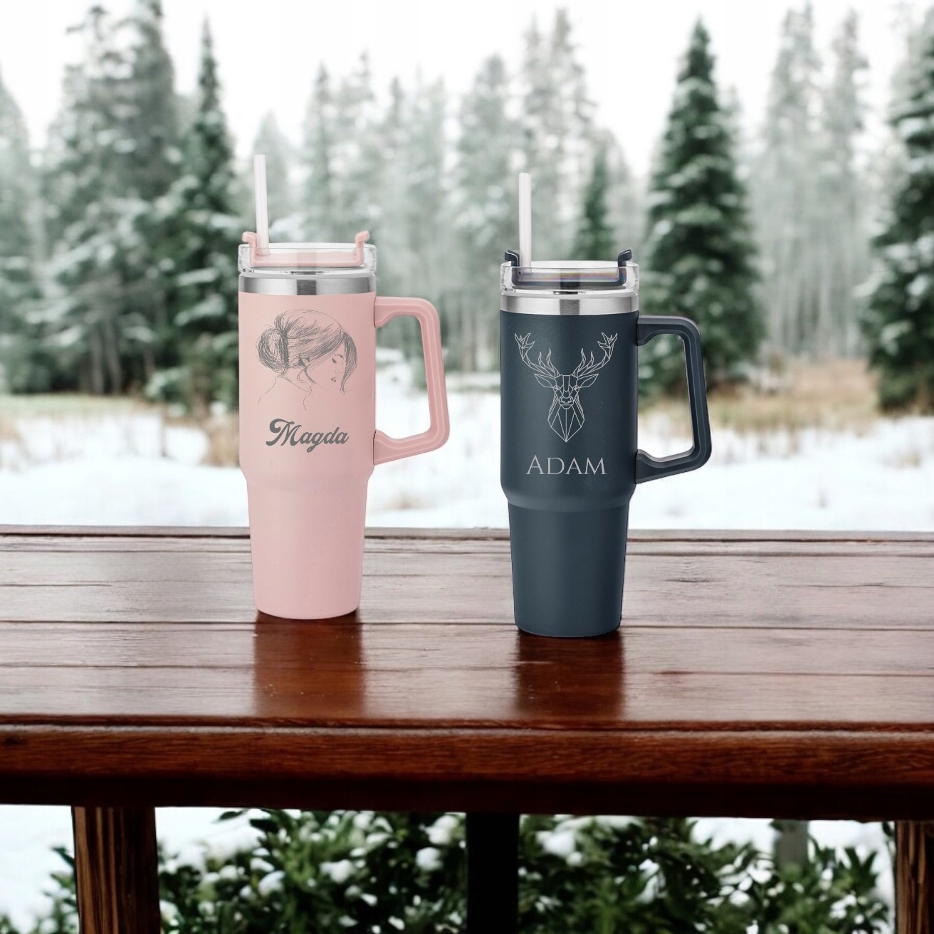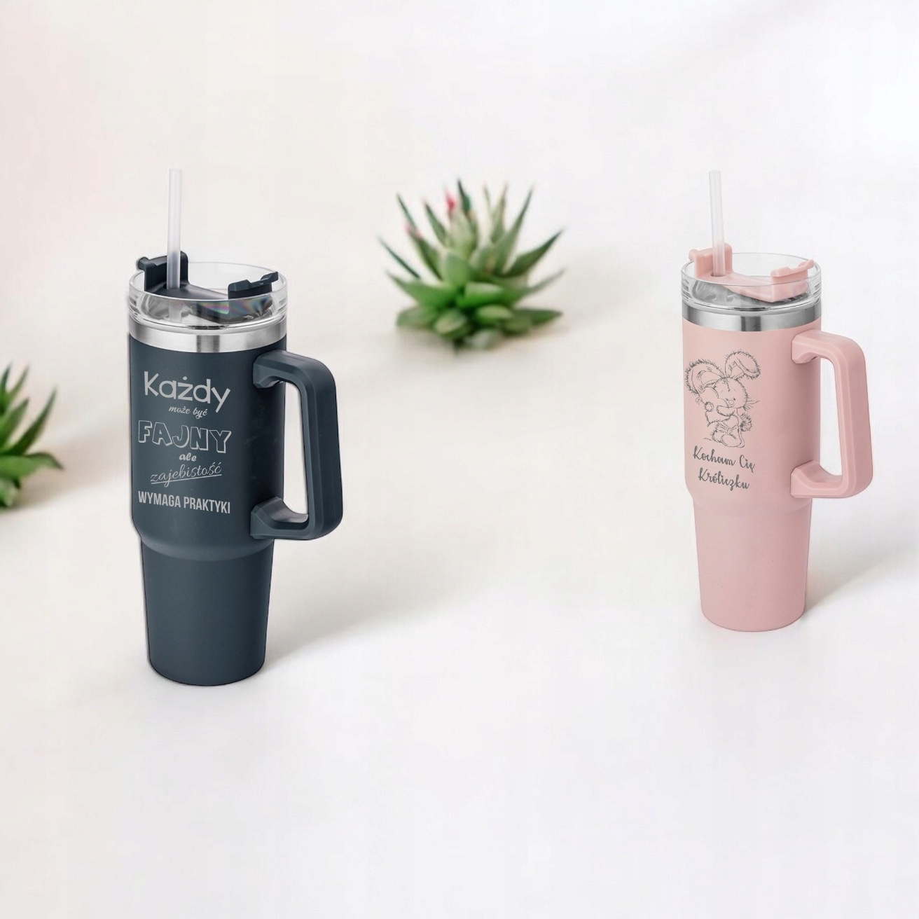 Odkryj stylowy i funkcjonalny kubek termiczny, idealny na prezent lub do codziennego użytku! Ten wysokiej jakości kubek o pojemności 880 ml został zaprojektowany z myślą o Twojej wygodzie – posiada praktyczną słomkę, wygodny uchwyt oraz możliwość personalizacji grawerem, dzięki czemu możesz dodać wyjątkowy napis lub grafikę.
