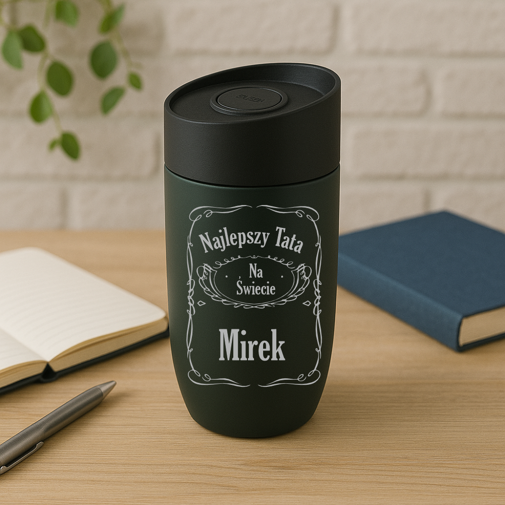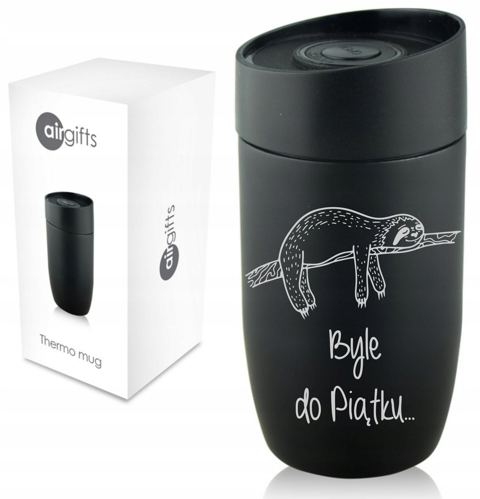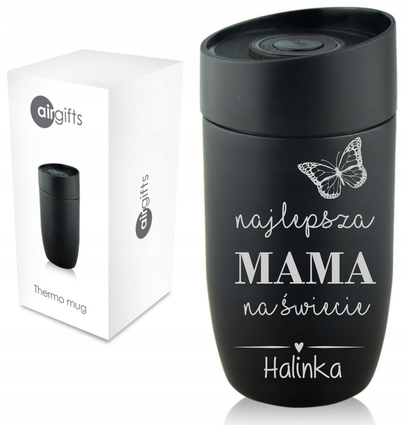 Kubek termiczny w kolorze CZARNYM o pojemności 300 ml z grawerem, który będzie pasować do większości ekspresów do kawy!