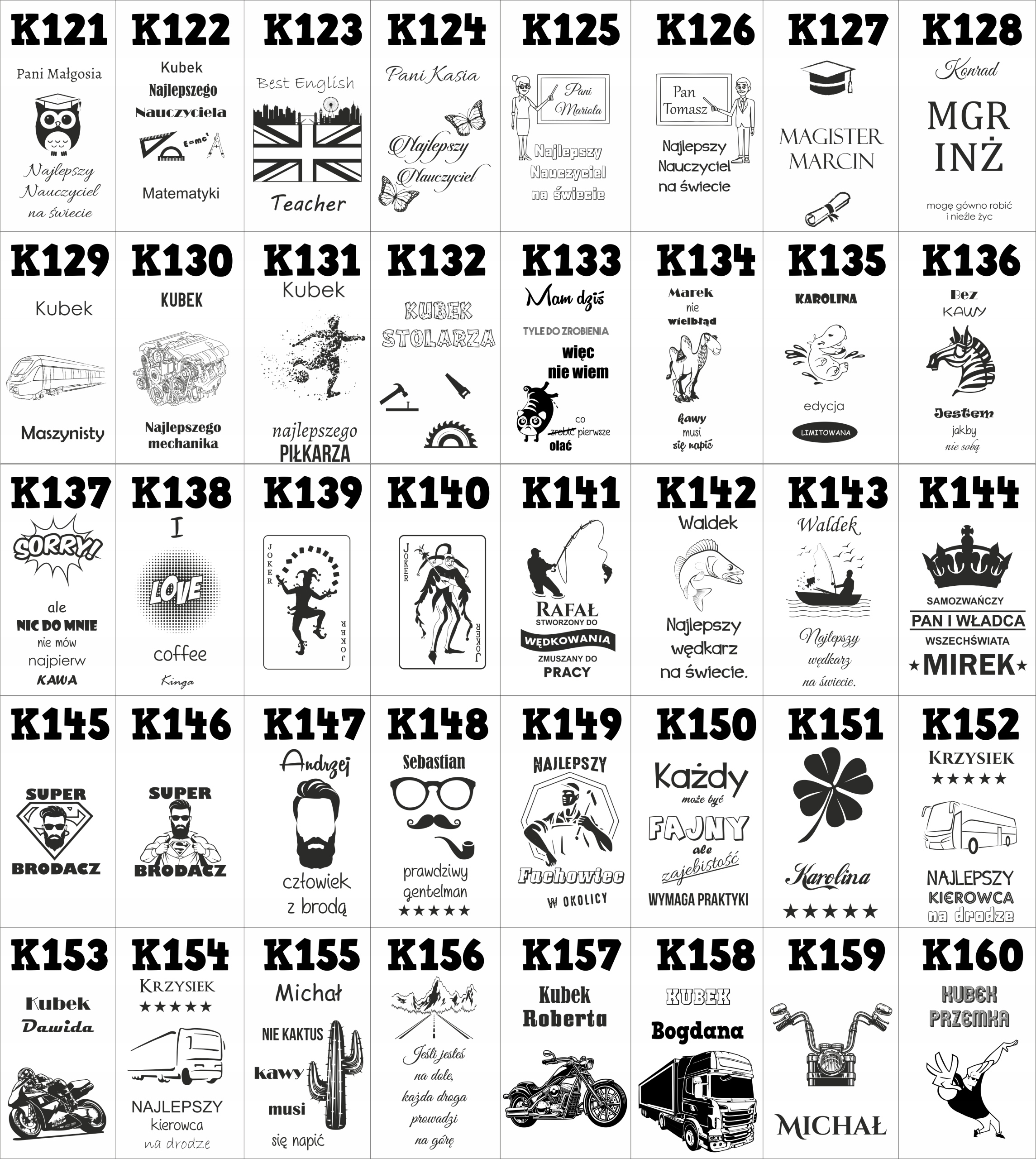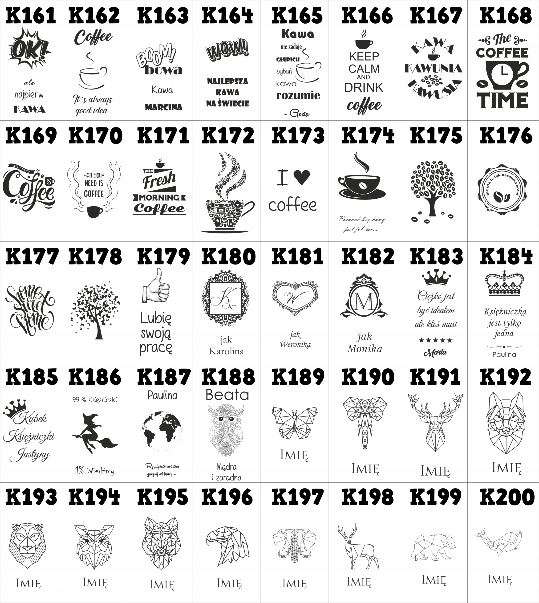 • w wiadomości do sprzedającego napisz numer wzoru np K3 imię Janusz lub data czy własny tekst w zależności do wybranego wzoru