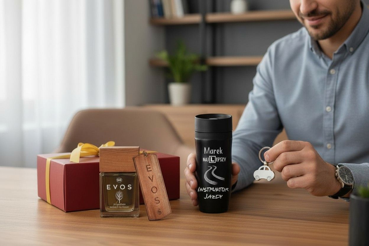 • Kubek termiczny z grawerem – utrzymuje napój gorący lub zimny, a personalizowany grawer sprawia, że jest wyjątkowy.