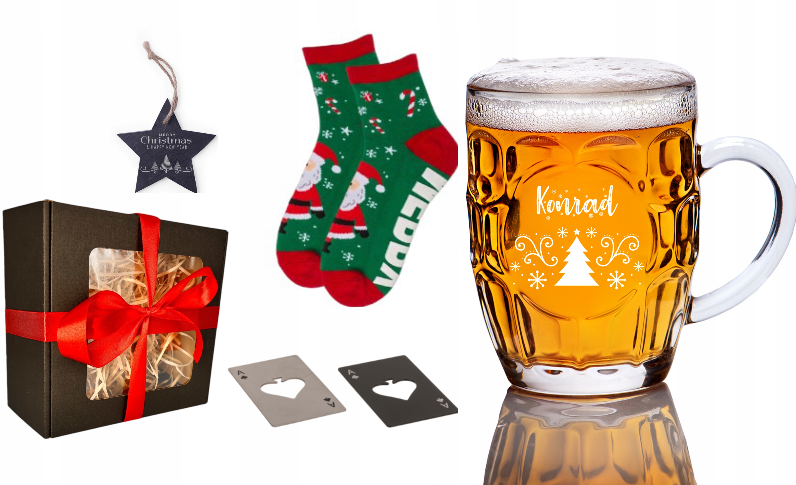 KUFEL DO PIWA Z GRAWEREM SKARPETKI OTWIERACZ PREZENT NA ŚWIĘTA MIKOŁAJKI