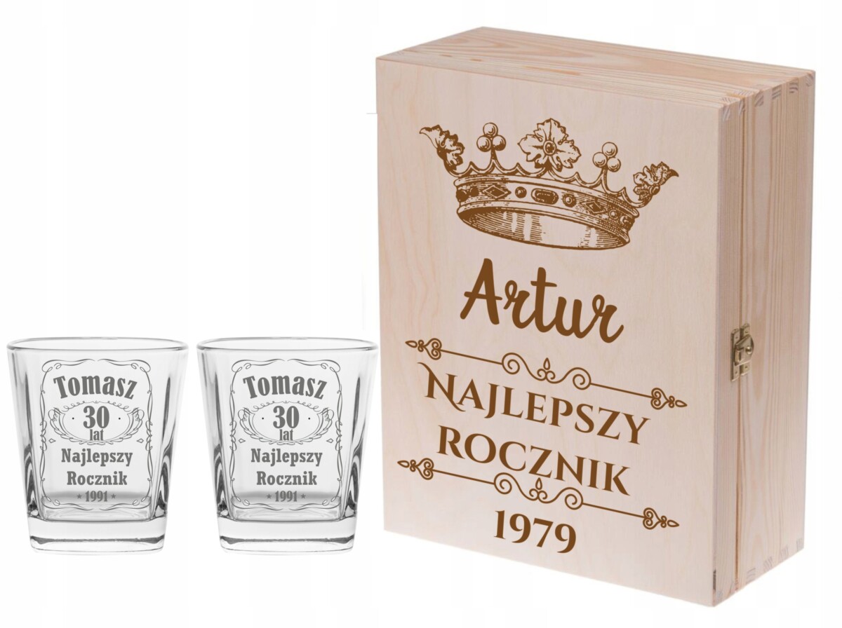 Przedmiotem aukcji jest skrzynka + szklanki z grawerem!