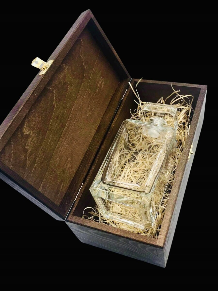 Przedmiotem aukcji jest skrzynka + karafka o pojemności 700 ml z grawerem!