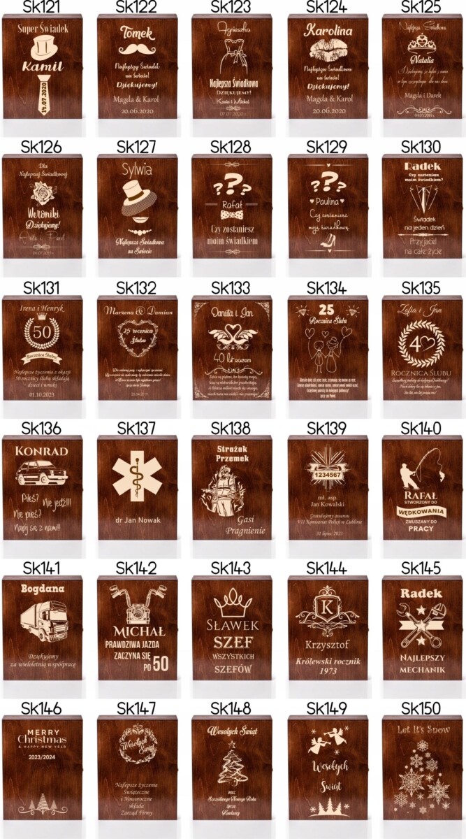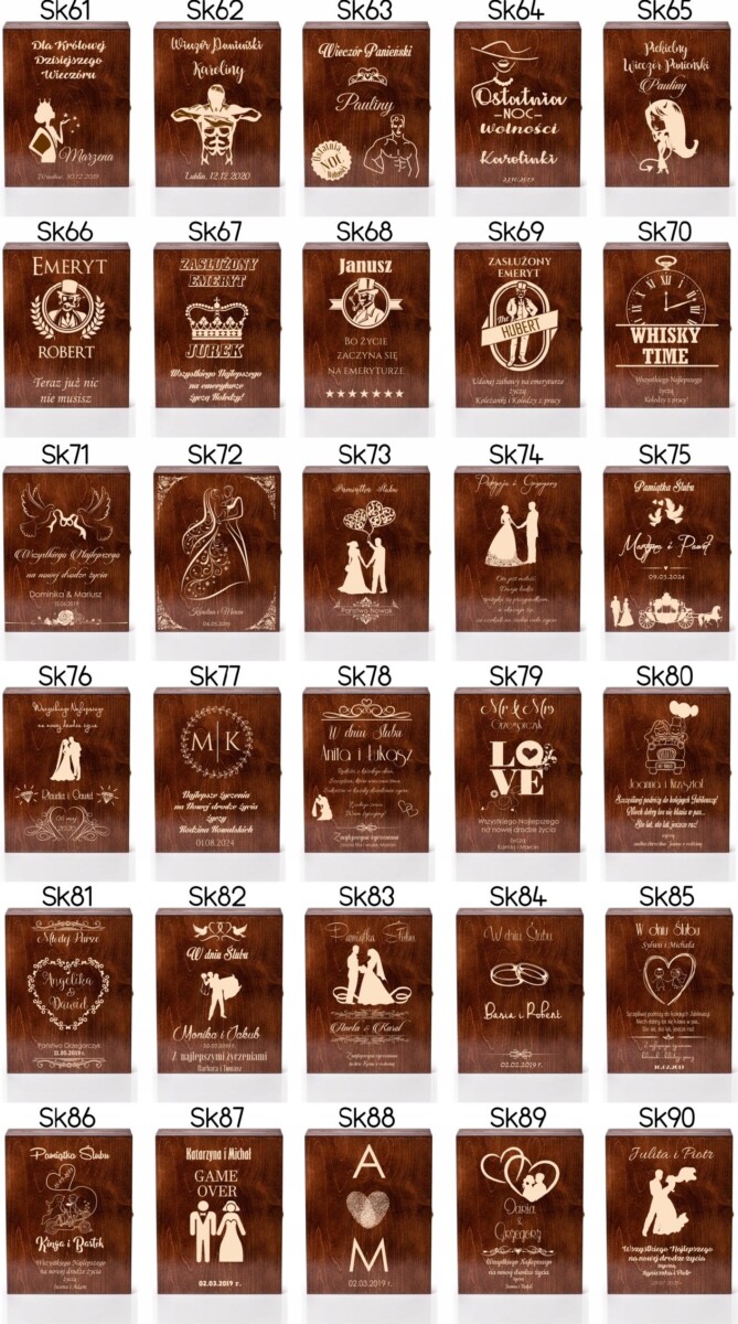Możliwość zamieszczenia takich samych grawerów na skrzynce i karafce lub dwa różne wzory, wystarczy wszystko opisać w wiadomości podczas składania zamówienia.