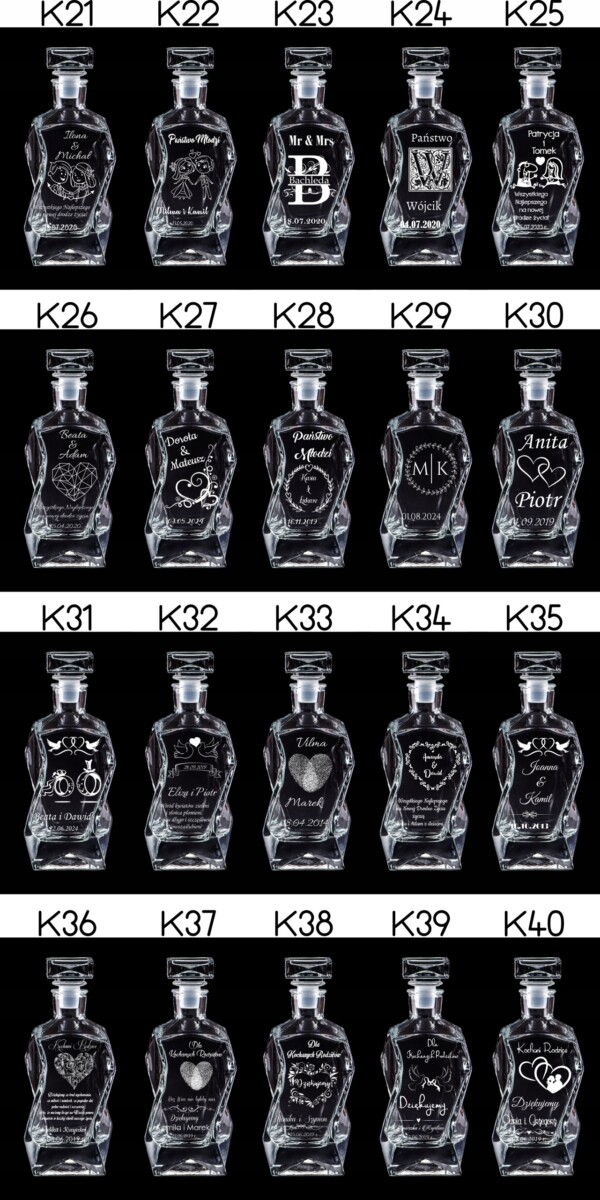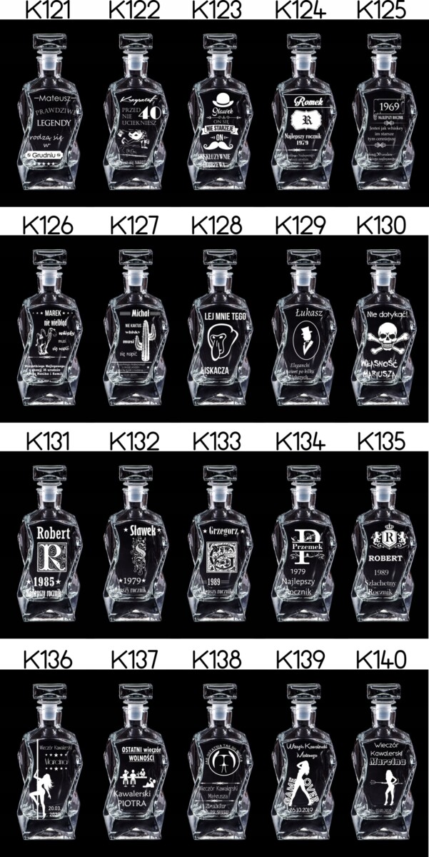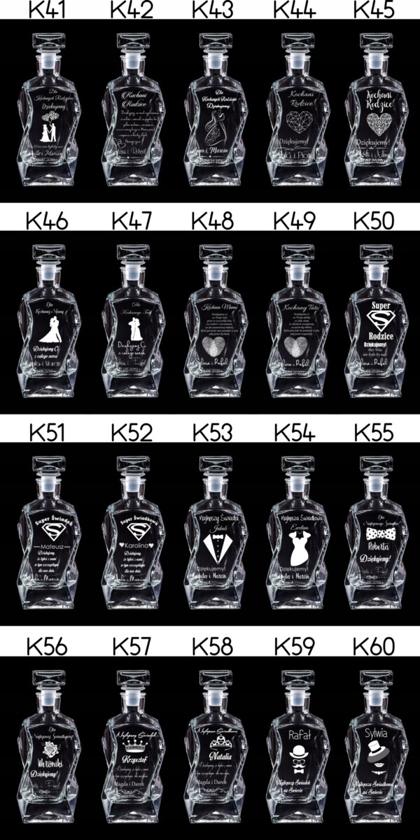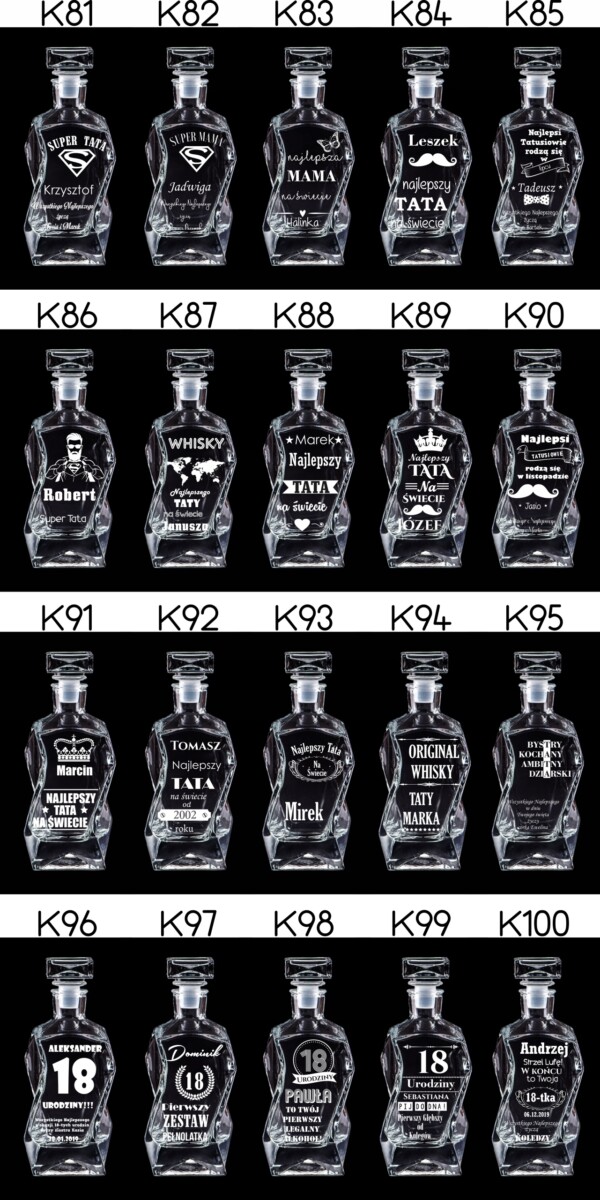 Możliwość zamieszczenia takich samych grawerów na skrzynce, karafce i szklankach. Wystarczy wszystko opisać w wiadomości podczas składania zamówienia.