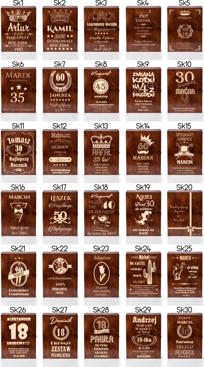 Wszystkie podane przykłady można edytować lub mieszać na własny dowolny sposób np. zamiast najlepszy tata wykonać najlepszy dziadek brat etc. Wystarczy przy zamówieniu wysłać nam wytyczne a my wykonamy zamówienie według podanych wytycznych!Możliwość wykonania własnych wzorów i projektów. Jeśli posiadają Państwo własną grafikę/wzór musi być wykonany w wersji wektorowej. W celu weryfikacji prosimy przesłać nam na email przed zamówieniem.Opis skrzynki