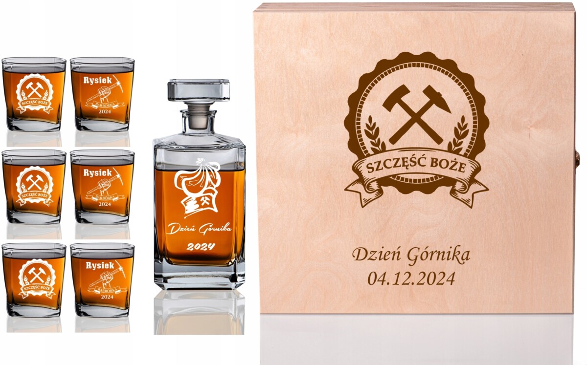 SKRZYNKA KARAFKA SZKLANKI DO WHISKY GRAWER DZIEŃ GÓRNIKA ŚWIĘTA BARBÓRKA