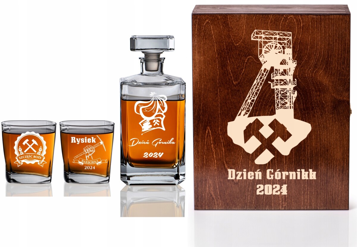 SKRZYNKA KARAFKA SZKLANKI DO WHISKY GRAWER DZIEŃ GÓRNIKA ŚWIĘTA BARBÓRKA