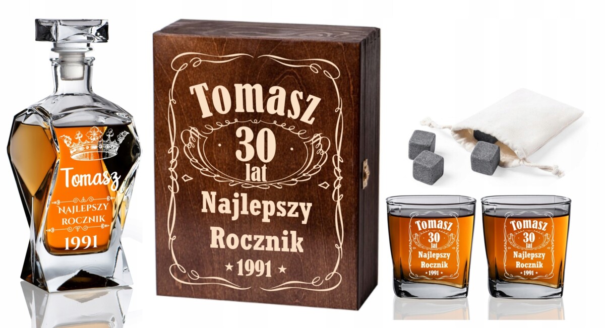 • SKRZYNKA KARAFKA SZKLANKI DO WHISKY Z GRAWEREM PREZENT URODZINY 18-99
