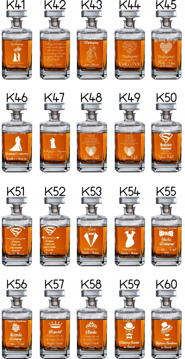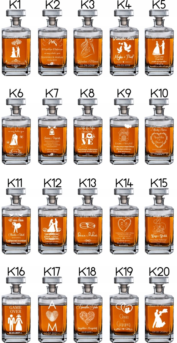 Możliwość zamieszczenia takich samych grawerów na skrzynce, karafce i szklankach. Wystarczy wszystko opisać w wiadomości podczas składania zamówienia.