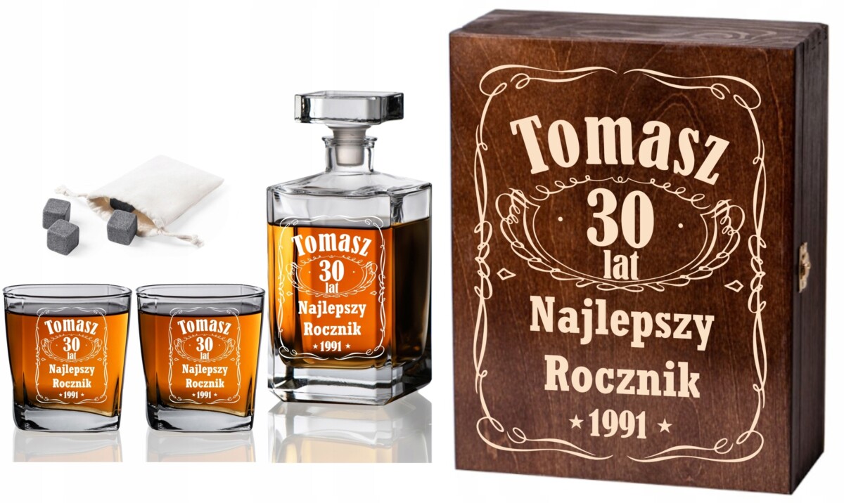 • SKRZYNKA KARAFKA SZKLANKI DO WHISKY Z GRAWEREM! URODZINY EMERYT KAWALERSKI