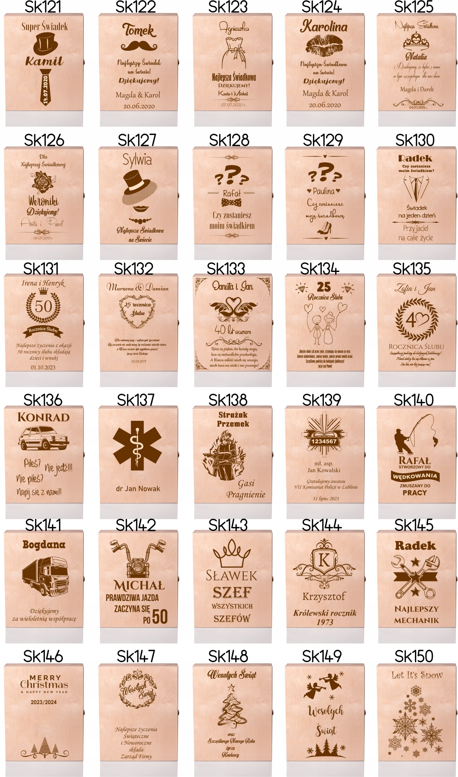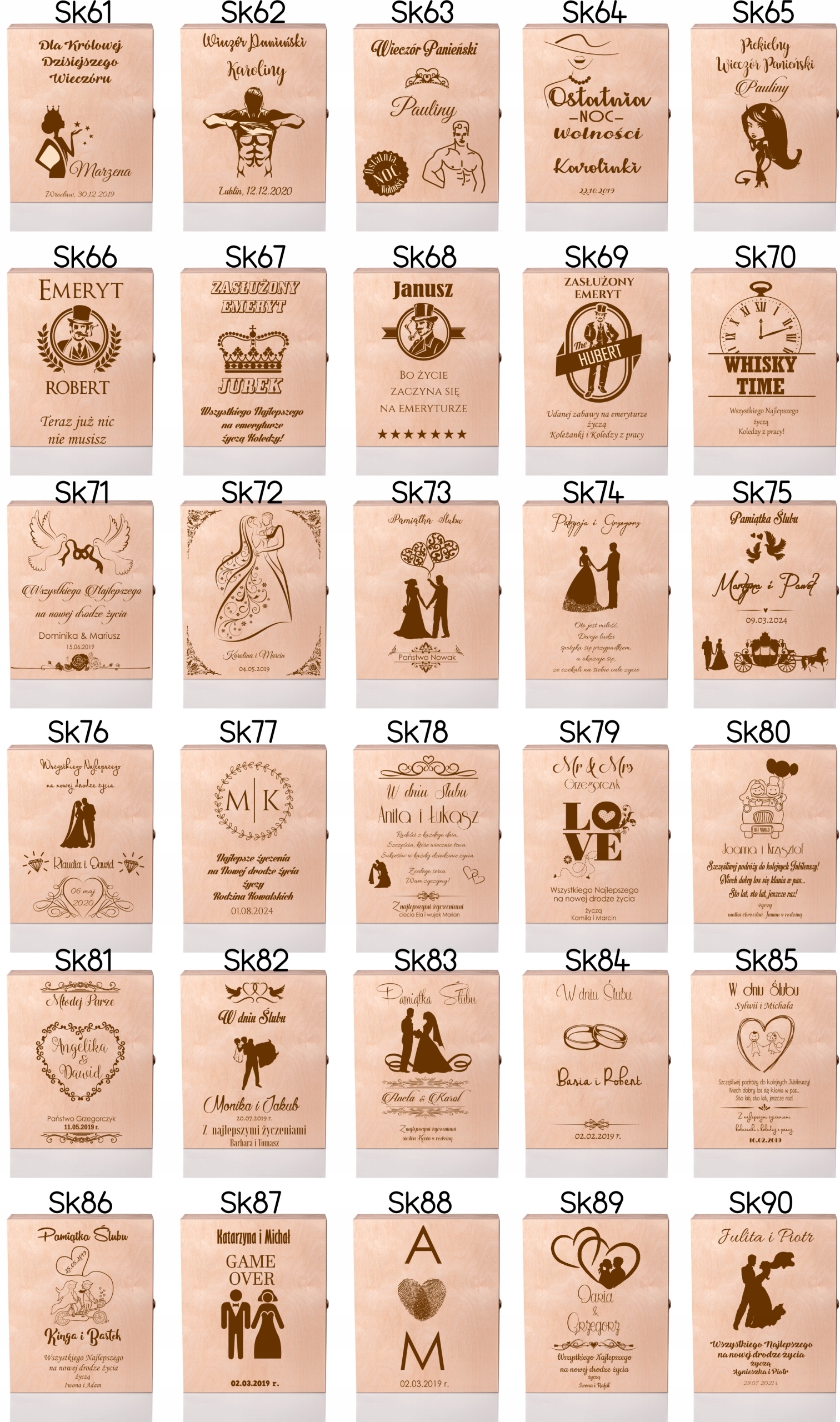 Każdy z poniższych wzorów można edytować na własny upodobany sposób lub każdy z poniższych przykładów, można mieszać między sobą tak aby każde zamówienie było wykonane specjalnie dla Ciebie i pozwoli na stworzenie niepowtarzalnego prezentu!