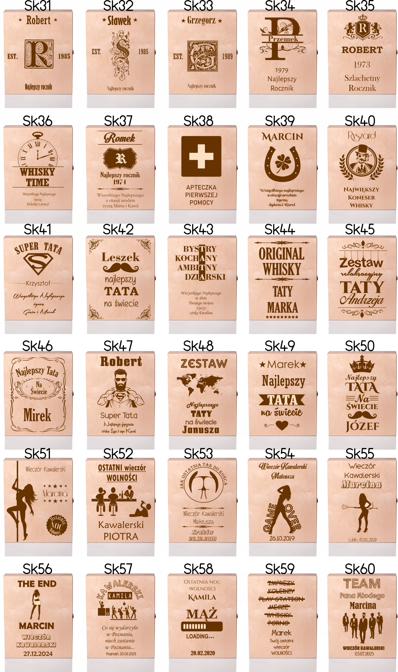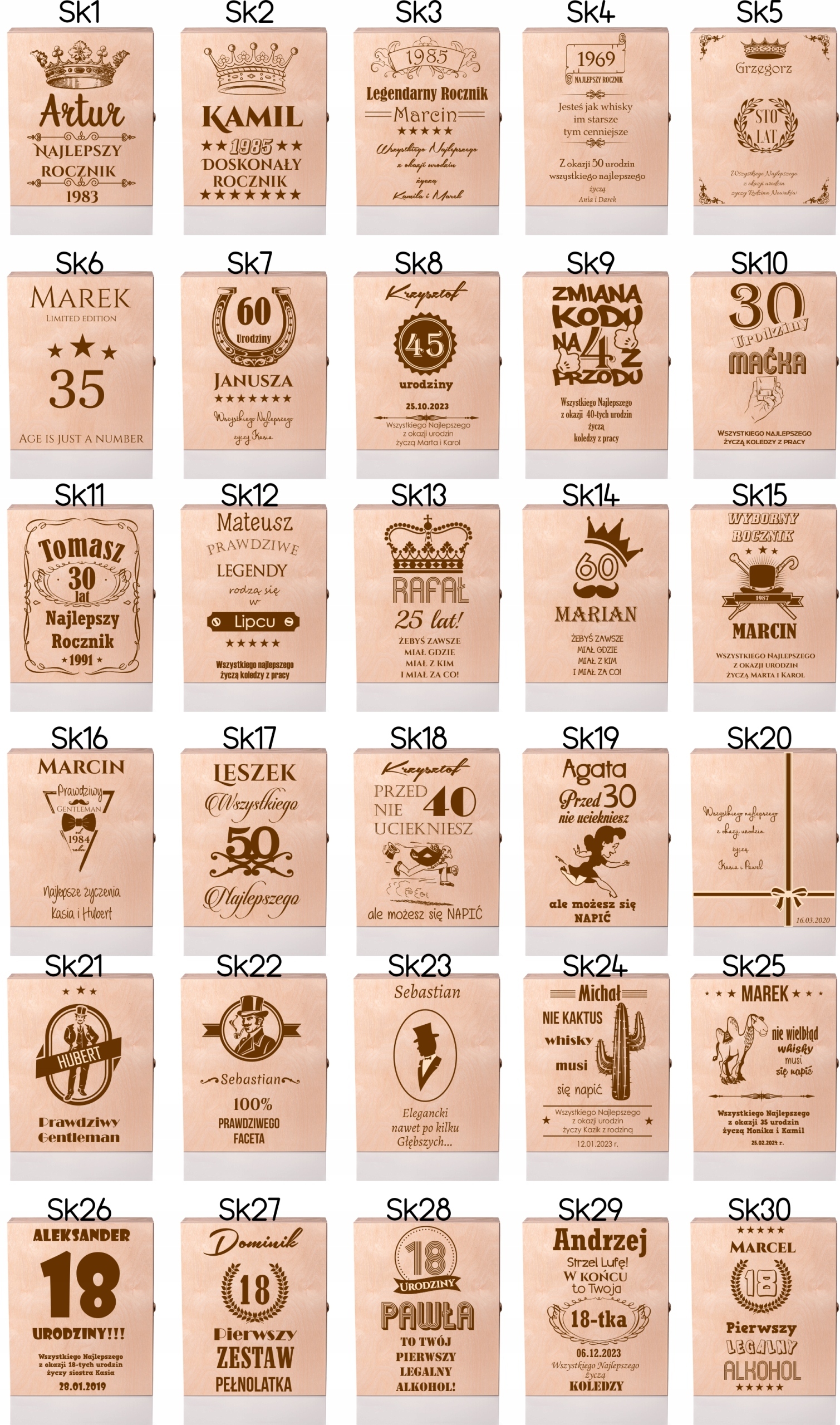 • Skrzynka – wzór SK 17 Aleksander, wiek 30 lub/i życzenia własne… lub inne informację nie zbędne do wykonania zamówienia