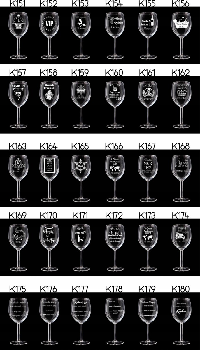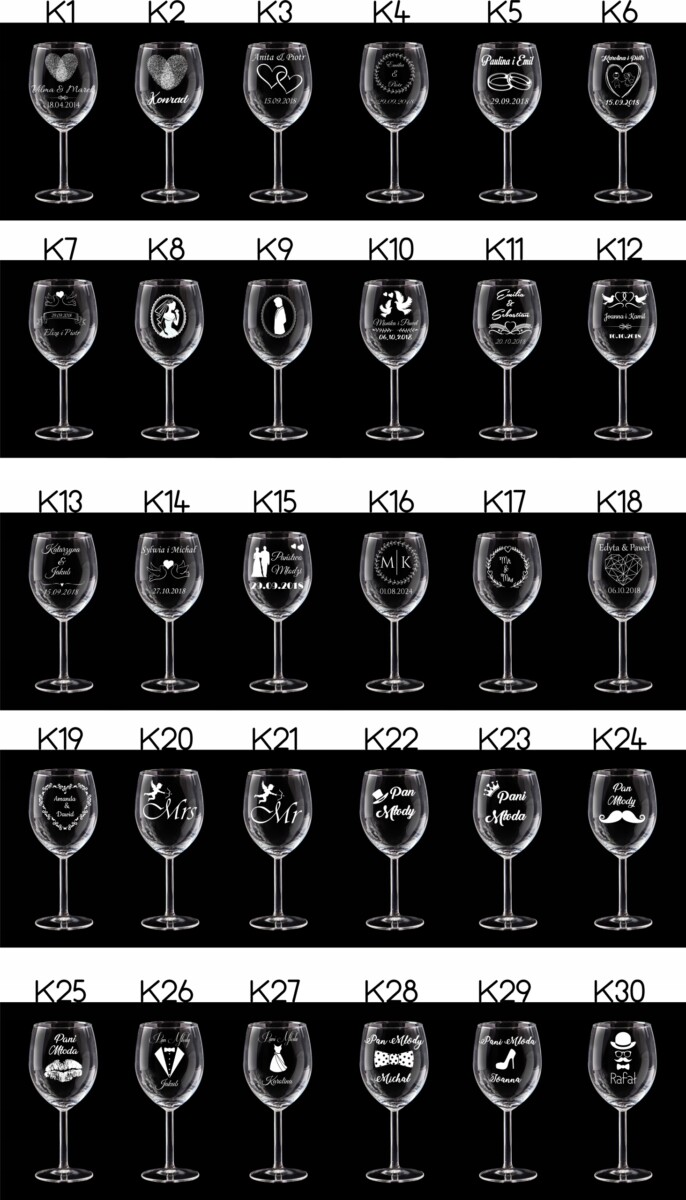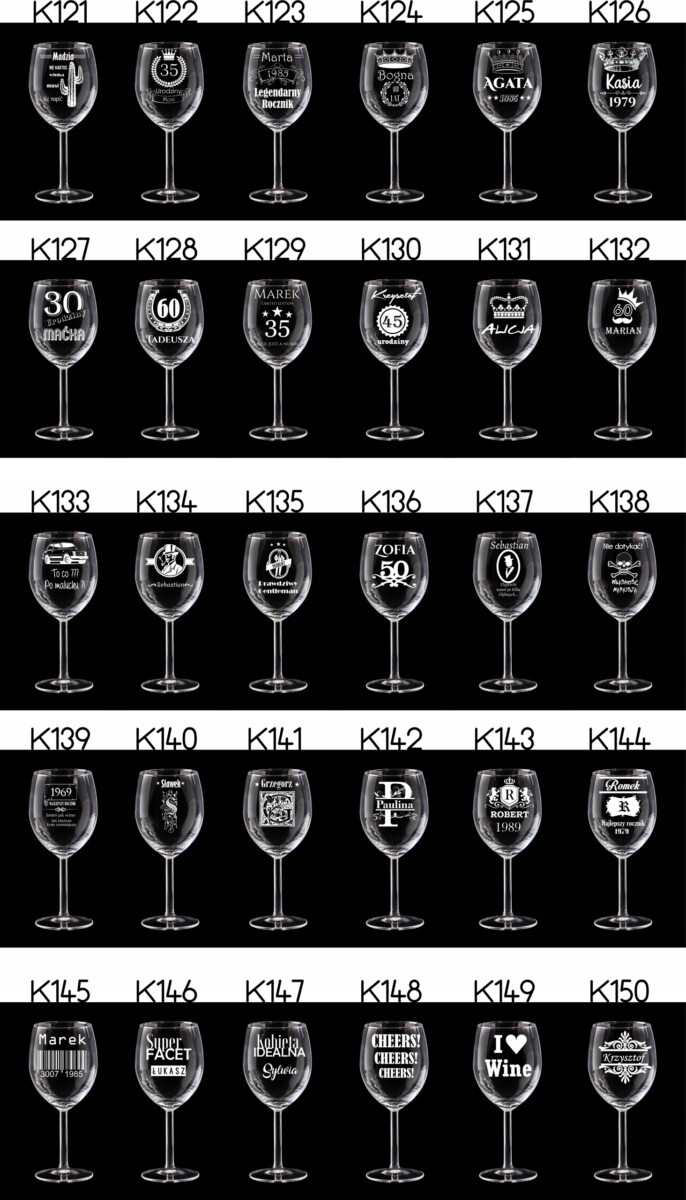 • kieliszek do wina białego lub czerwonego 1 sztuka 300 ml z grawerem (grawer w kolorze białym matowym),