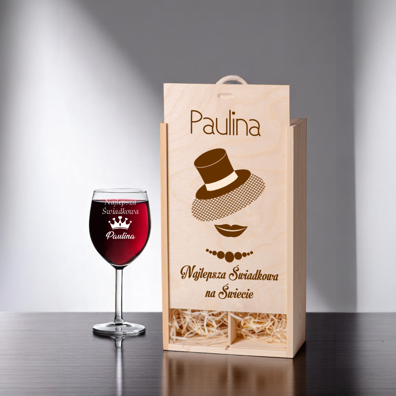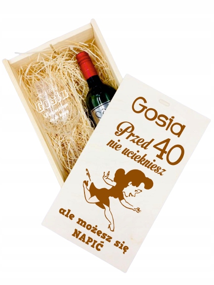 • Grawer i personalizacja na skrzynce i kieliszkach w cenie.