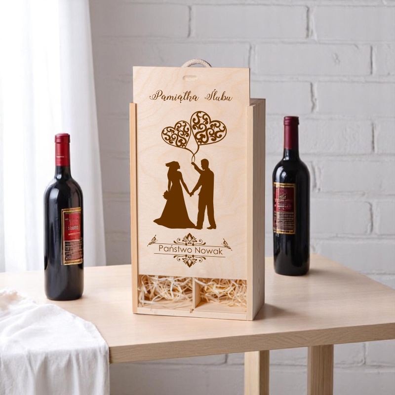 • SKRZYNKA NA 2 WINA Z GRAWEREM ŚLUB URODZINY