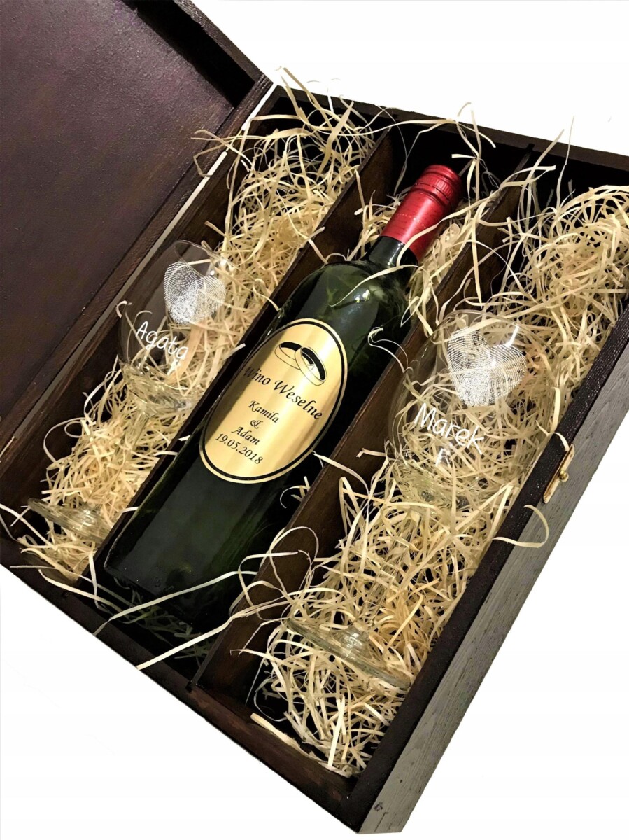 • SKRZYNKA NA WINO KIELISZKI Z GRAWEREM ROCZNICA ŚLUBU