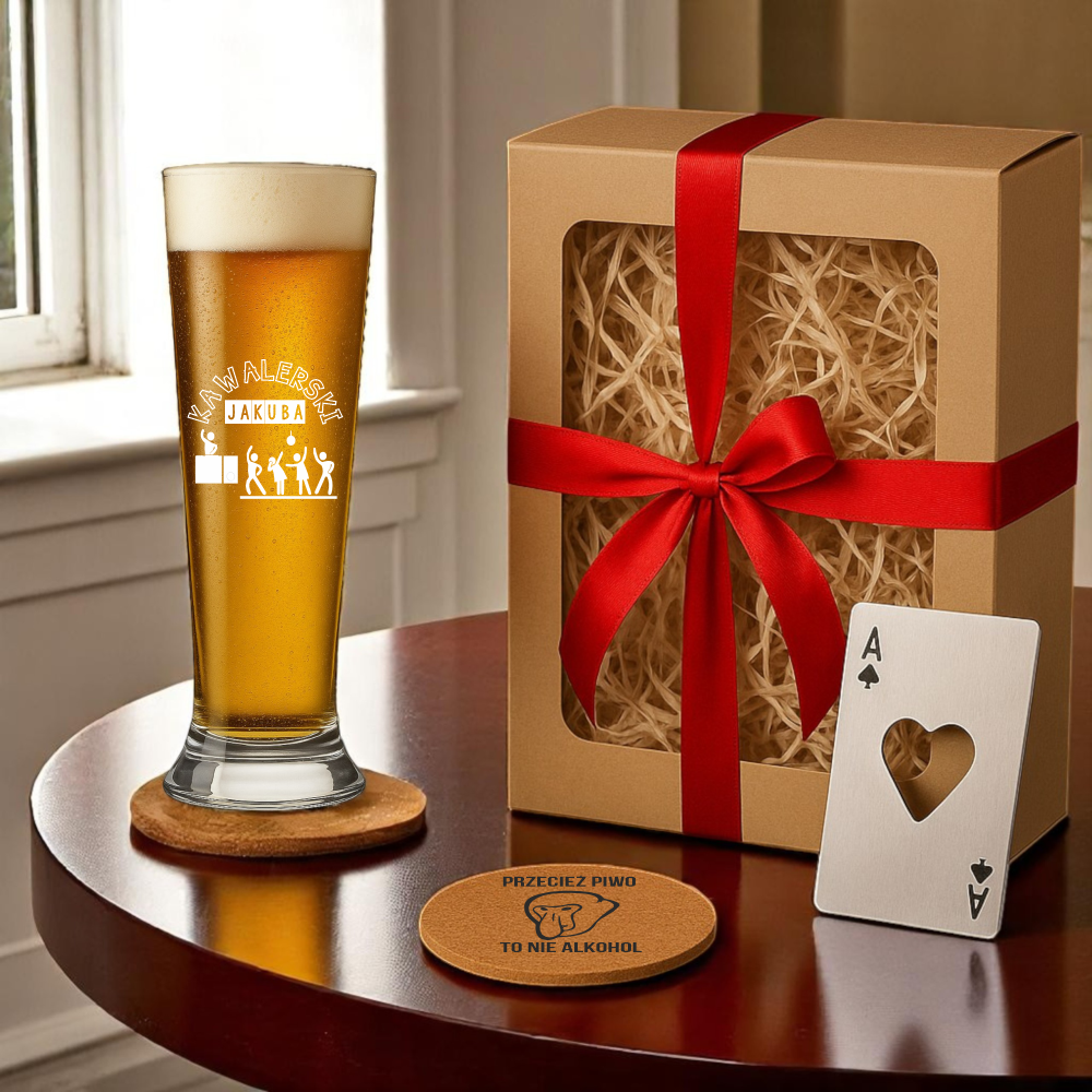 • SZKLANKA KUFEL DO PIWA Z GRAWEREM WIECZÓR KAWALERSKI