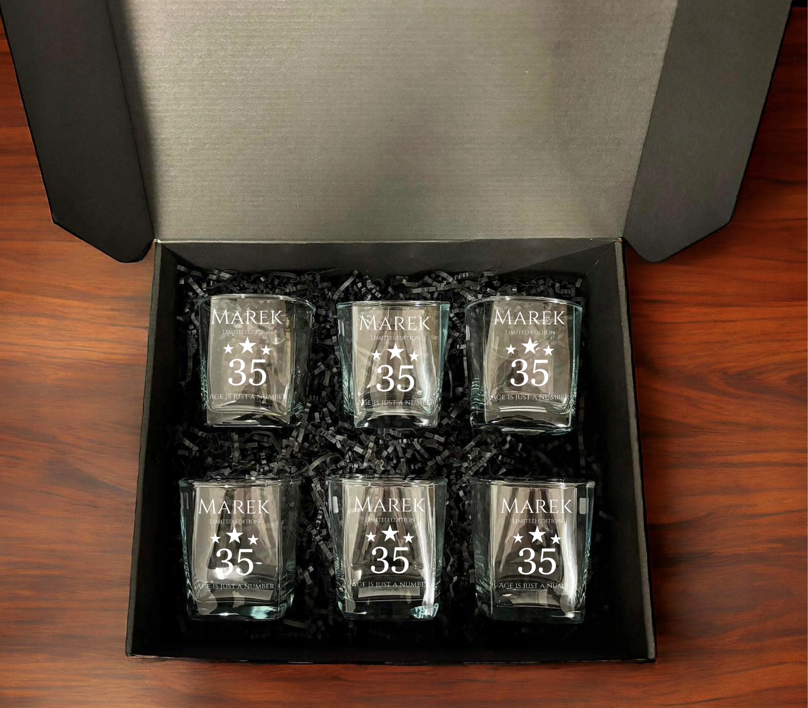 Przedmiotem aukcji jest zestaw 6 szklanek do whisky 310 ml z personalizowanym grawerem wykonana z grubego szkła!