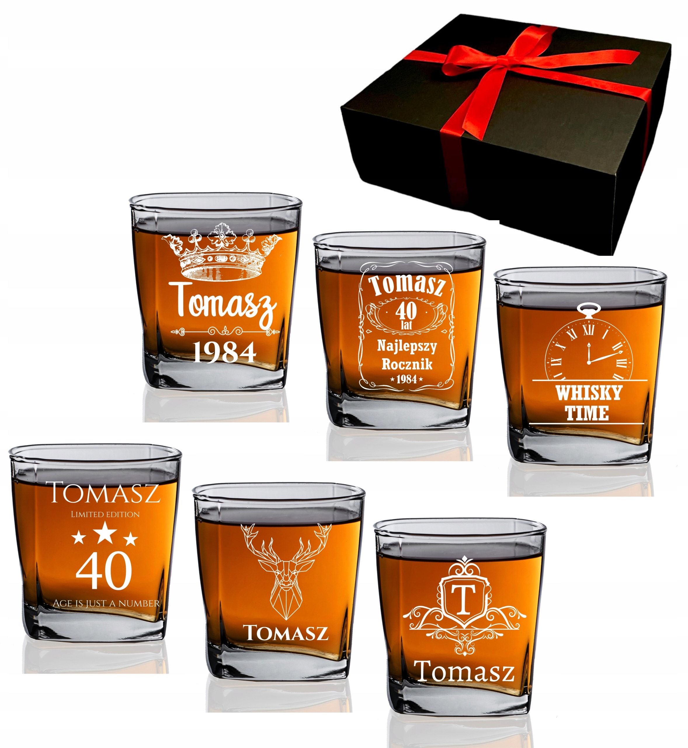 • SZKLANKI DO WHISKY Z GRAWEREM 6 SZTUK PREZENT URODZINY EMERYTURA ŚWIADEK