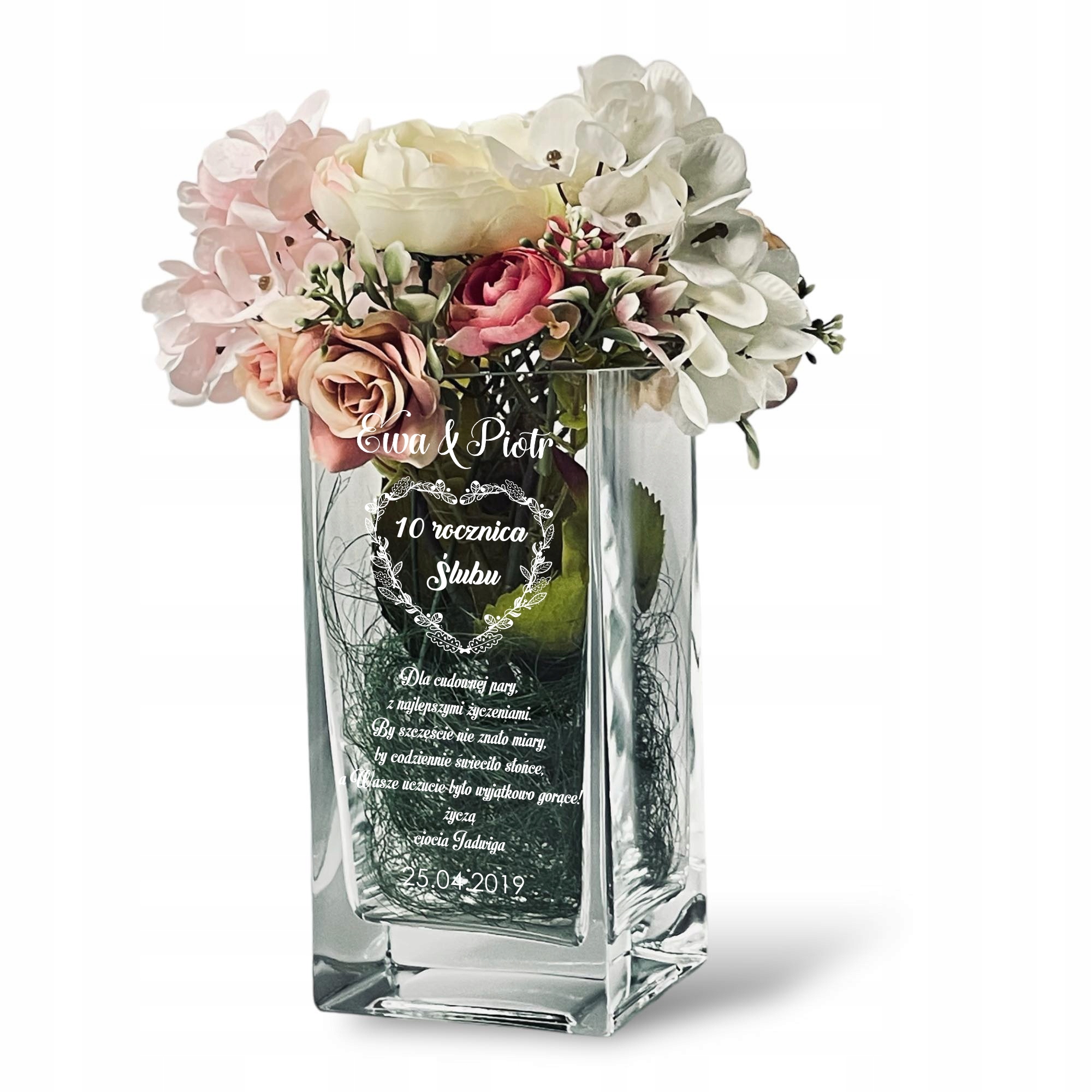 Wazon wykonany z grubego szkła i świetnie się sprawdzi jako prezent na rocznicę ślubu, ślub, dzień mamy, babci lub każdą inną okazję!